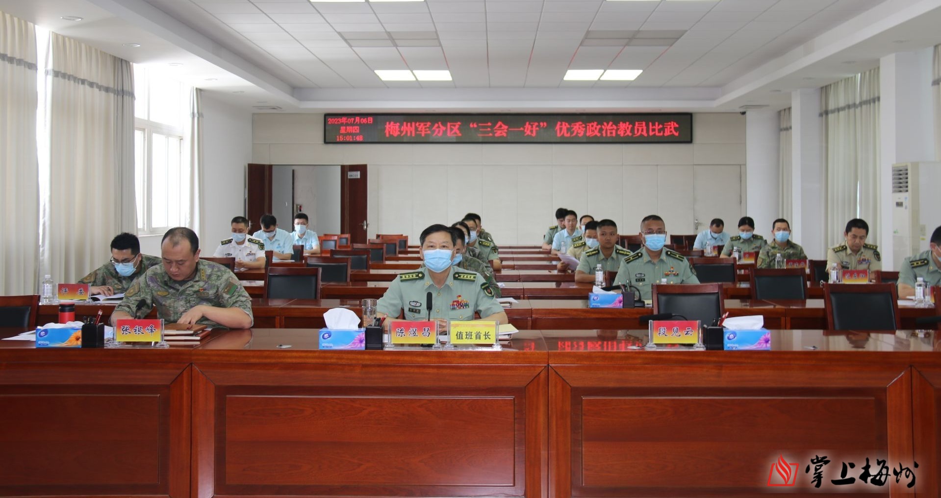 掌上梅州讯 6日,梅州军分区举办“三会一好”政治教员比武,来自全市各地15名政治教员在三尺讲台展风采。经过一下午展示,6人分别获得一二三等奖。市委常委、梅州军分区政委陈煜昌观看比赛。