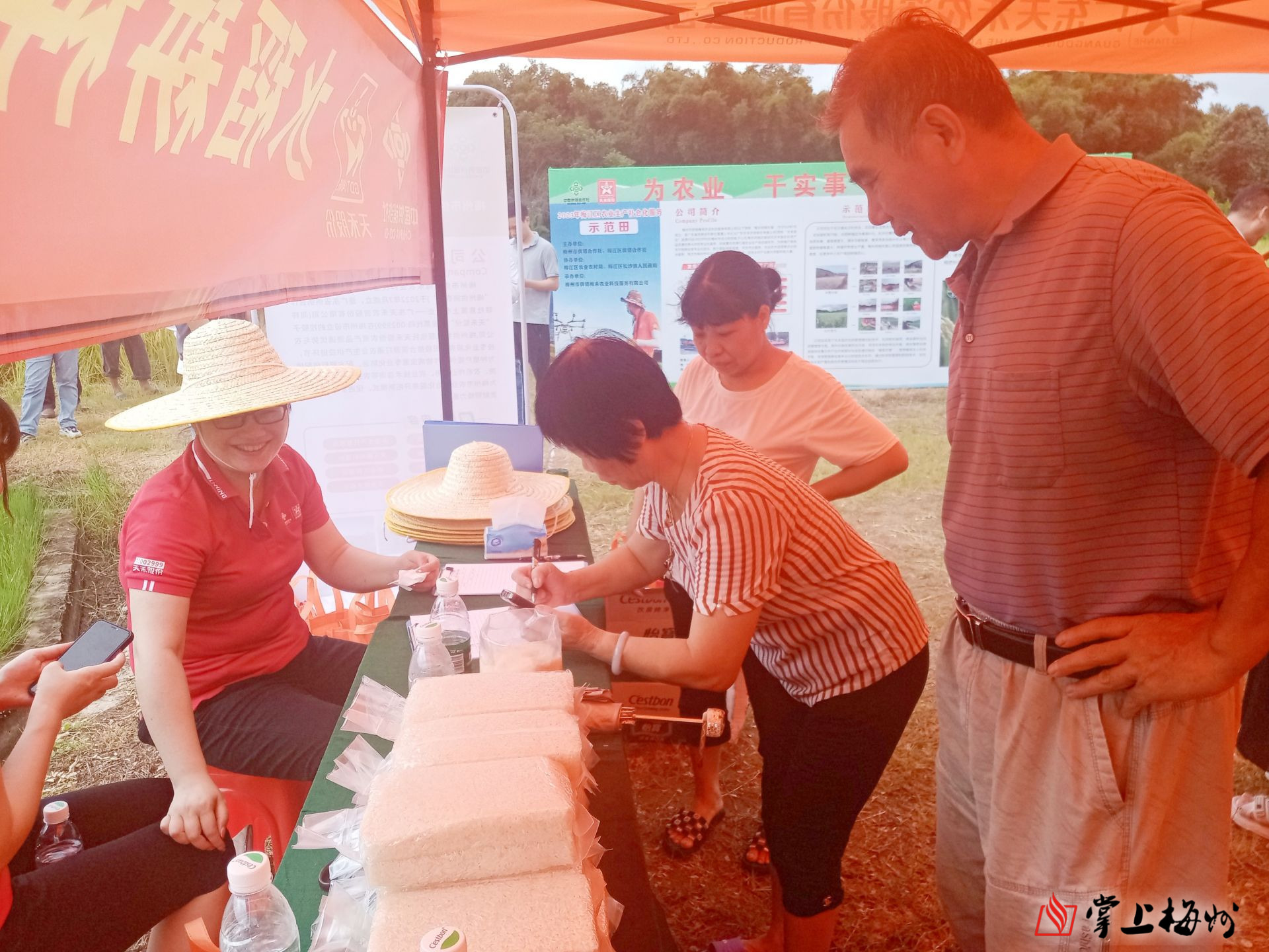 谁能想到,这片丰收景象的土地在去年还是一片低产的沙坝地。长沙村井头和上罗片区的100多亩撂荒复耕地,由于长期缺水、泥层薄,属典型沙坝地、营养贫瘠、灌溉难度极大,复耕以后的这两年,平均亩产仅有200多斤湿谷。梅州供销农服公司的肖仕忠经理告诉记者,“增产增收的背后,是供销农业社会化专业服务的支撑。今年初,当地镇政府委托梅州供销农服全托管社会化服务后,我们一方面将以前种植19香更换为更高产、更抗病虫害的粤香430品种;另一方面安装多台抽水机从梅江河抽水、灭红火蚁、统防统治、采用高效低毒农药等,多管齐下促丰产,早稻亩产提升到700斤湿谷,增长了2.5倍”。