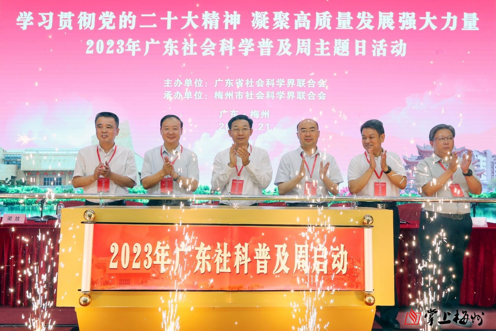 掌上梅州讯 7月21日,以“学习贯彻党的二十大精神 凝聚高质量发展强大力量”为主题的2023年广东社科普及周主题日活动在梅州举行,省市联动同步展开。省社科联党组书记、主席张知干,省委主题教育第十一巡回指导组副组长金世章,省社科联党组成员、专职副主席曾赠;市委常委、宣传部部长张运全,市委常委、副市长赵东参加活动。