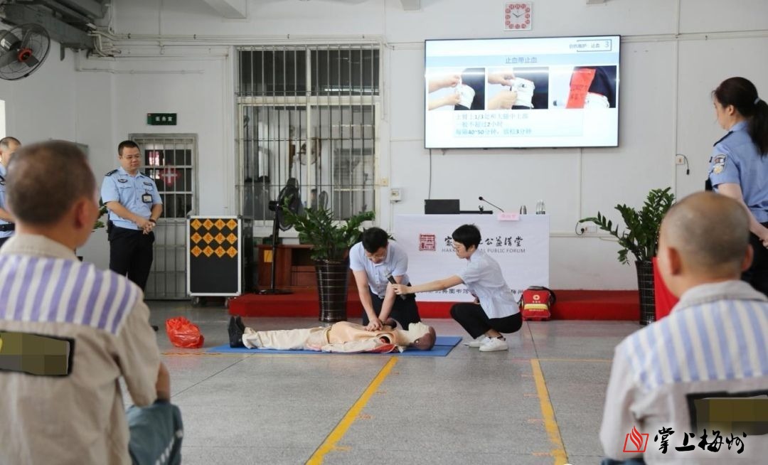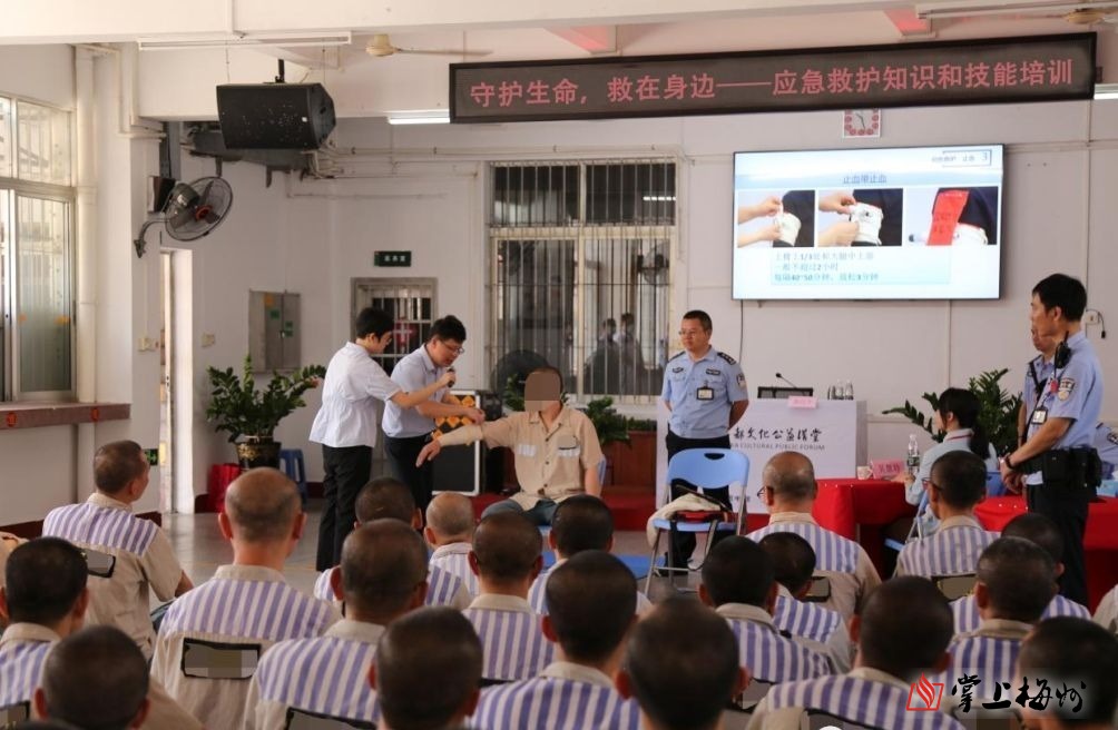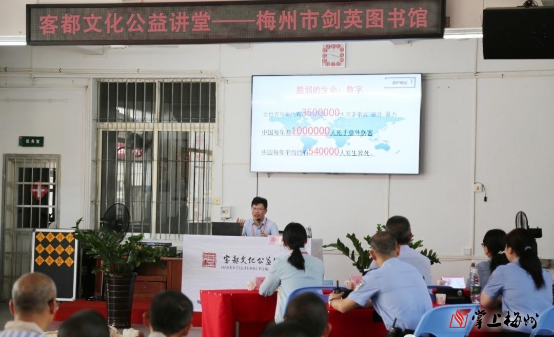 掌上梅州讯 客都文化公益讲堂第68讲《守护生命,救在身边——应急救护知识和技能培训》日前在广东省梅州监狱举行,梅州监狱组织狱警、服刑人员到场听讲。这是客都文化公益讲堂再次走出剑英图书馆到外单位举行,也是剑英图书馆与梅州监狱开展文化帮教工作的一次成功实践。