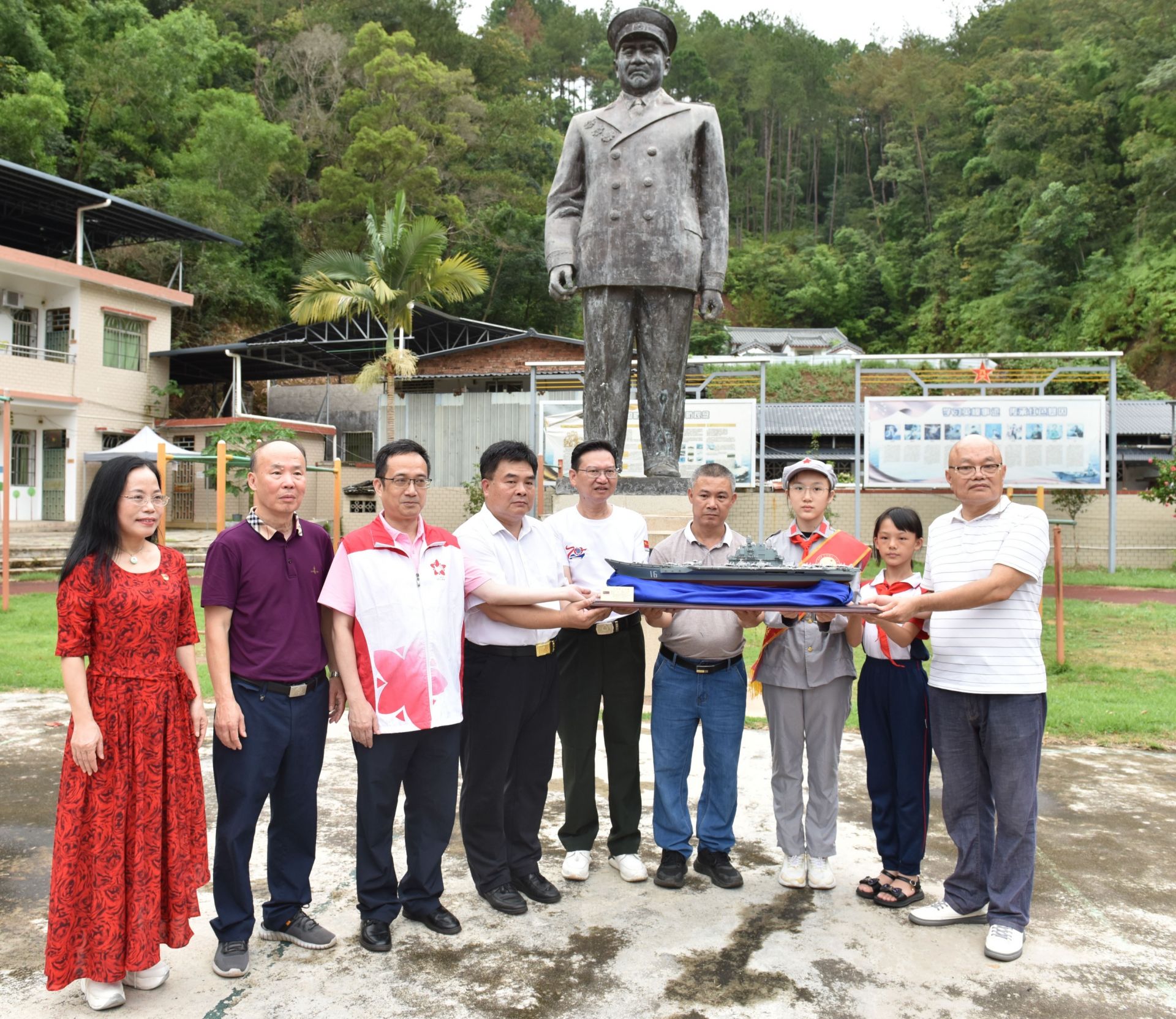 在三河坝八一红军小学,广州党员志愿者和同学们举行特别仪式,共同向“八一”军旗致敬,省委党校吴松山教授为大家讲微党课。受“16号舰长”徐增平老前辈的委托,广州党员志愿者代表向三河坝八一红军小学赠送“辽宁号”航空母舰模型,再次点燃了“强军梦”。同时,艺术家刘长朋教小学生绘画、邱雯老师为学生上语言艺术课……系列精彩的活动让大家感受到红色基因和血脉代代相承的蓬勃力量,享受了一场红色文化大餐。