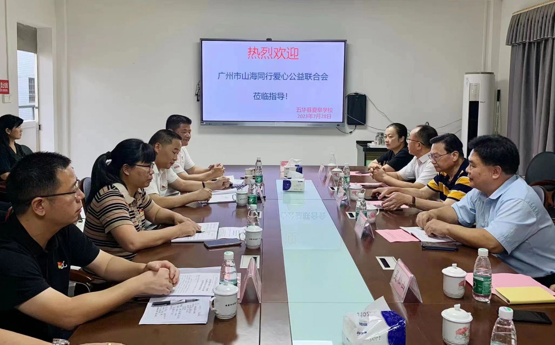 掌上梅州讯 山海相连,心手相牵。“八一”前夕,广州“山海对话”党员志愿者走进梅州召开“山海对话”工作会议,与叶剑英红军小学、三河坝八一红军小学、北塘红军小学、兴宁光夏红军小学、五华县夏阜学校5所学校的校长和相关教育部门负责人共商教育大计,一起探讨如何在“山海对话”中更好发挥党建引领作用,赓续红色血脉,共建共育共成长。