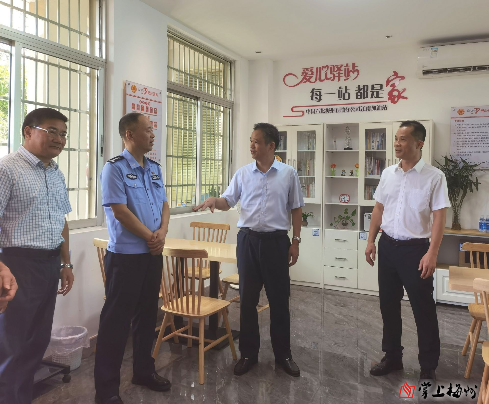 在中国石化梅江区江南加油站,张达宏一行向奋战在高温一线的户外执勤公安干警、快递小哥、环卫工人、中石化加油员和梅州城区美团公司送餐员代表致以亲切慰问,并送上防暑降温慰问品,叮嘱大家要注意劳逸结合,坚持安全第一、生命第一,在做好本职工作的同时,注意高温酷暑下的自我防护。随后,张达宏一行走进江南加油站户外劳动者工会爱心驿站参观,与环卫工人、快递小哥等深入交谈,关切地询问他们的工作和生活情况,对他们为梅州经济社会发展做出的贡献予以充分肯定,嘱咐他们可随时到工会爱心驿站享受暖心服务。
