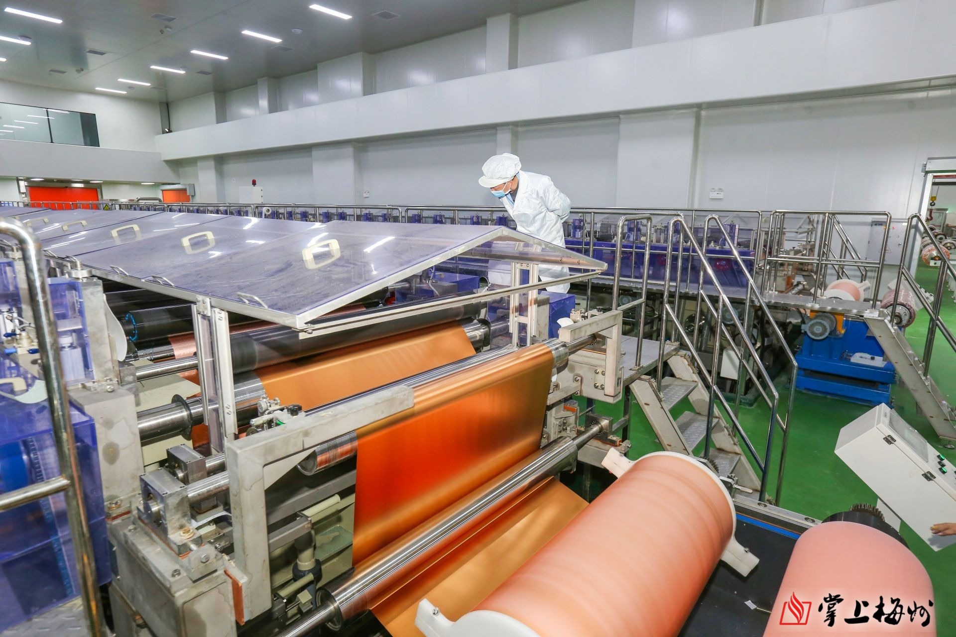 盛夏时节,走进省重点项目——广东盈华电子科技有限公司年产5.66万吨高端铜箔项目现场看到,项目建设和产品生产均呈现一片火热的场景。在项目一期生产车间,生箔一体机全部启动,有序运转,一张张闪着金光、厚度为微米级的铜箔从机器中缓缓吐出,缓慢成卷。“项目一期年产3万吨高端铜箔项目已于去年9月28日投产,目前项目订单充足,生产正常运行。”广东盈华电子科技有限公司总经办主任魏福莹介绍,二期年产2.66万吨高端铜箔项目厂房也在今年6月顺利封顶,计划今年9月28日试产。