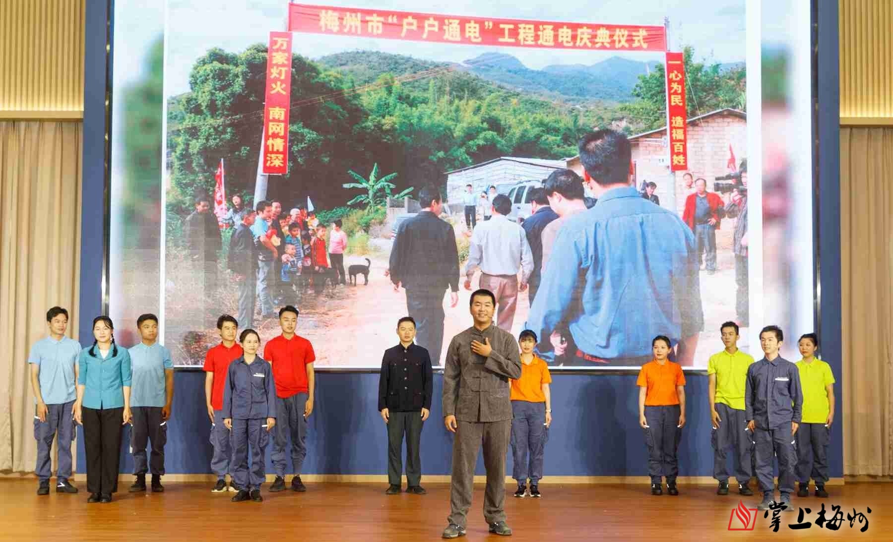 访谈结束后,由梅州供电员工演绎的情景朗诵《光耀百年映初心》声情并茂,通过5个小故事,展现了梅州电网发展历程和一代代电力人为人民群众送去光明和温暖的时代风采,赢得了在场观众热烈的掌声。