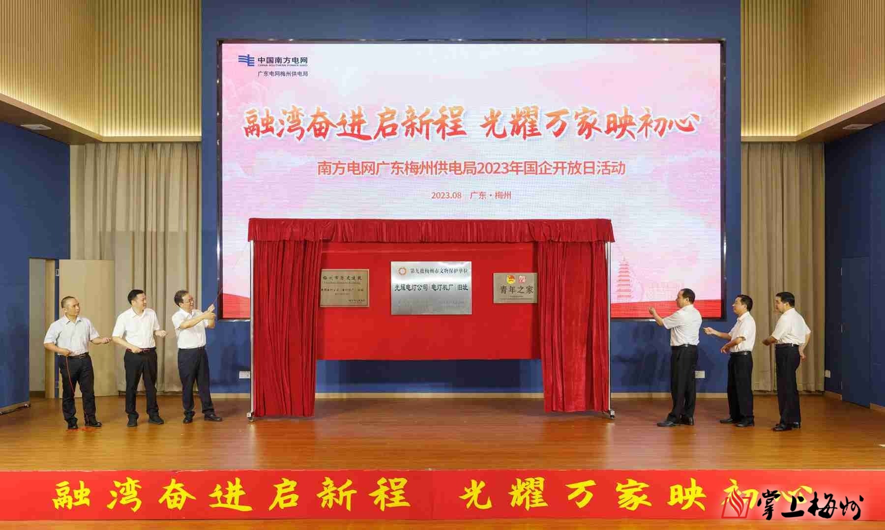 上半场活动在红梅大礼堂举行。现场首先播放了宣传片《第一盏灯的故事》,接着,在现场人员见证下,领导嘉宾共同为光耀电灯公司(电灯机厂)旧址“梅州市文物保护单位”“梅州市历史建筑”“青年之家”揭牌。据悉,1917年,梅县黄兰君等人集资在梅城下市席草堂开办光耀电灯公司,供城镇夜间照明,亮起了梅州城区的“第一盏灯”,距今已有106年的历史。光耀电灯公司见证了梅州城区和梅县区的电力发展及工商业发展。为了做好电力历史文化资源的保护利用,梅州供电局积极谋划将光耀电灯公司(电灯机厂)旧址进行保护性修缮并活化利用,从而发挥它的最大价值,先后获批“梅州市文物保护单位”“梅州市历史建筑”等称号。将其活化利用为“青年之家”,更是传承利用历史文化遗存的新方式。