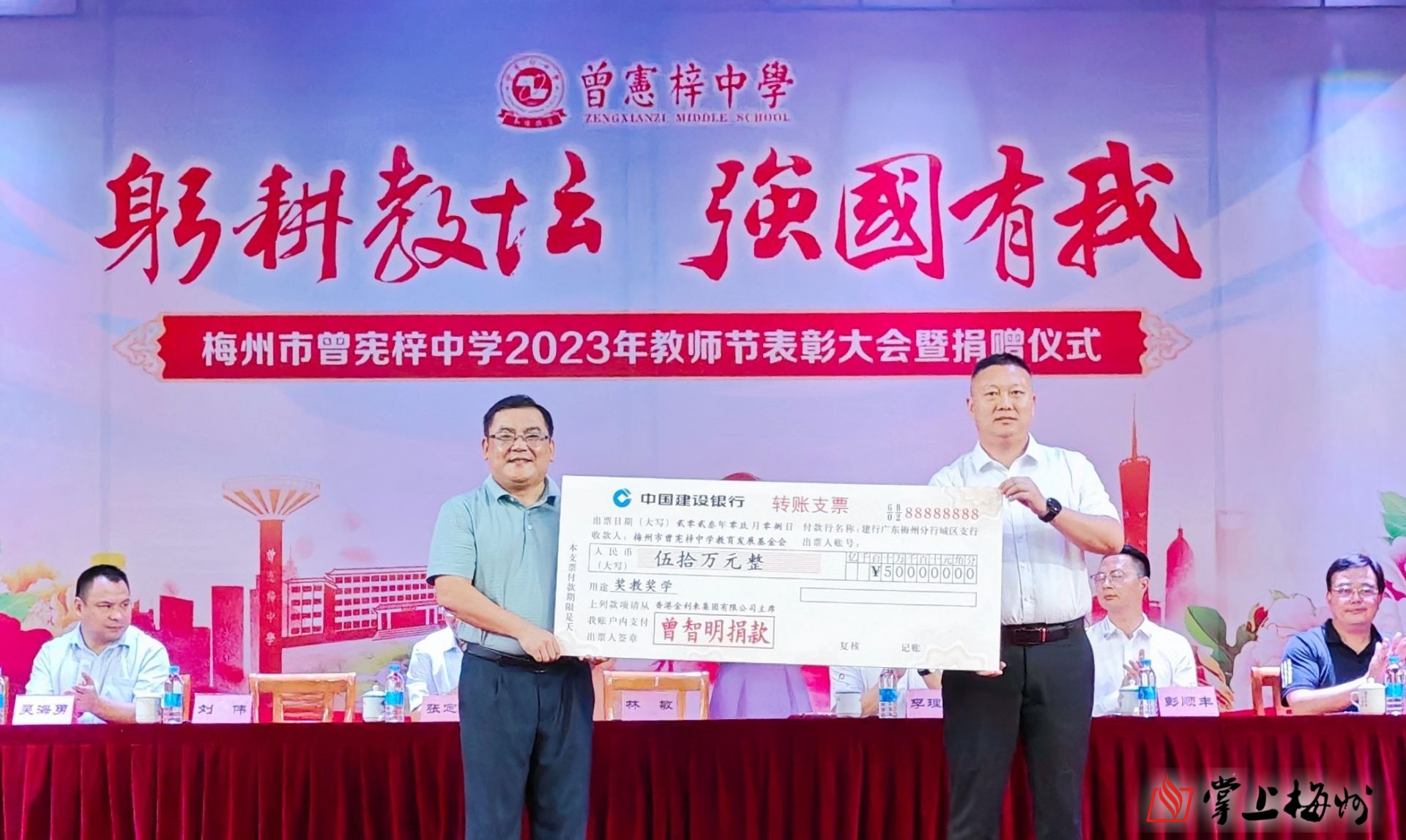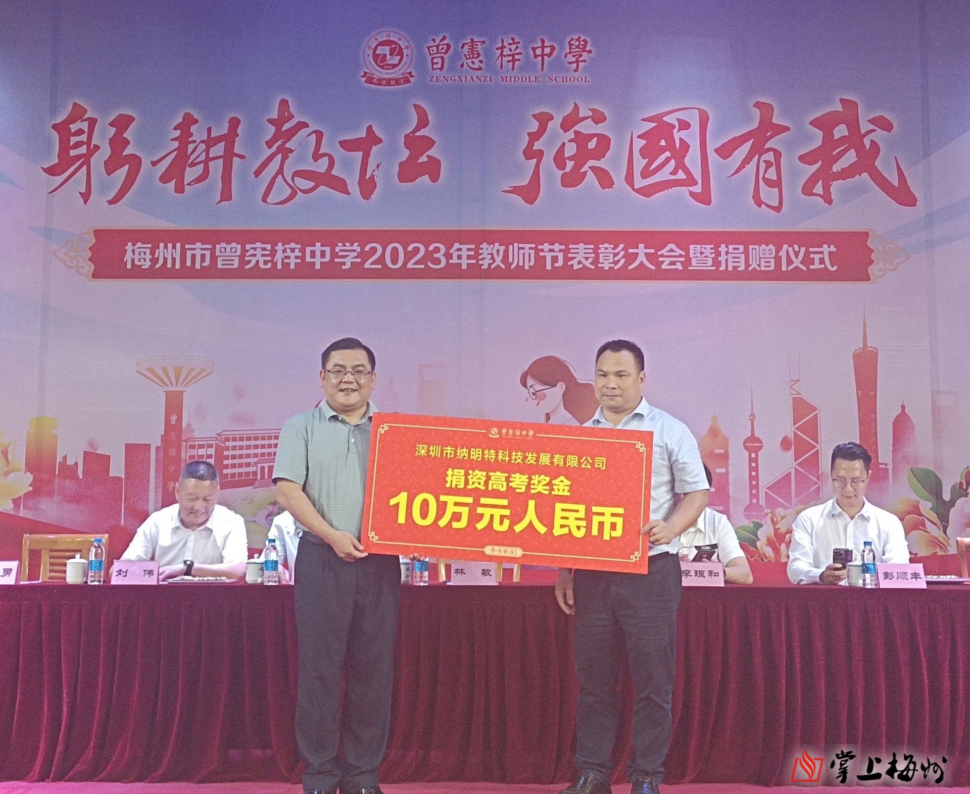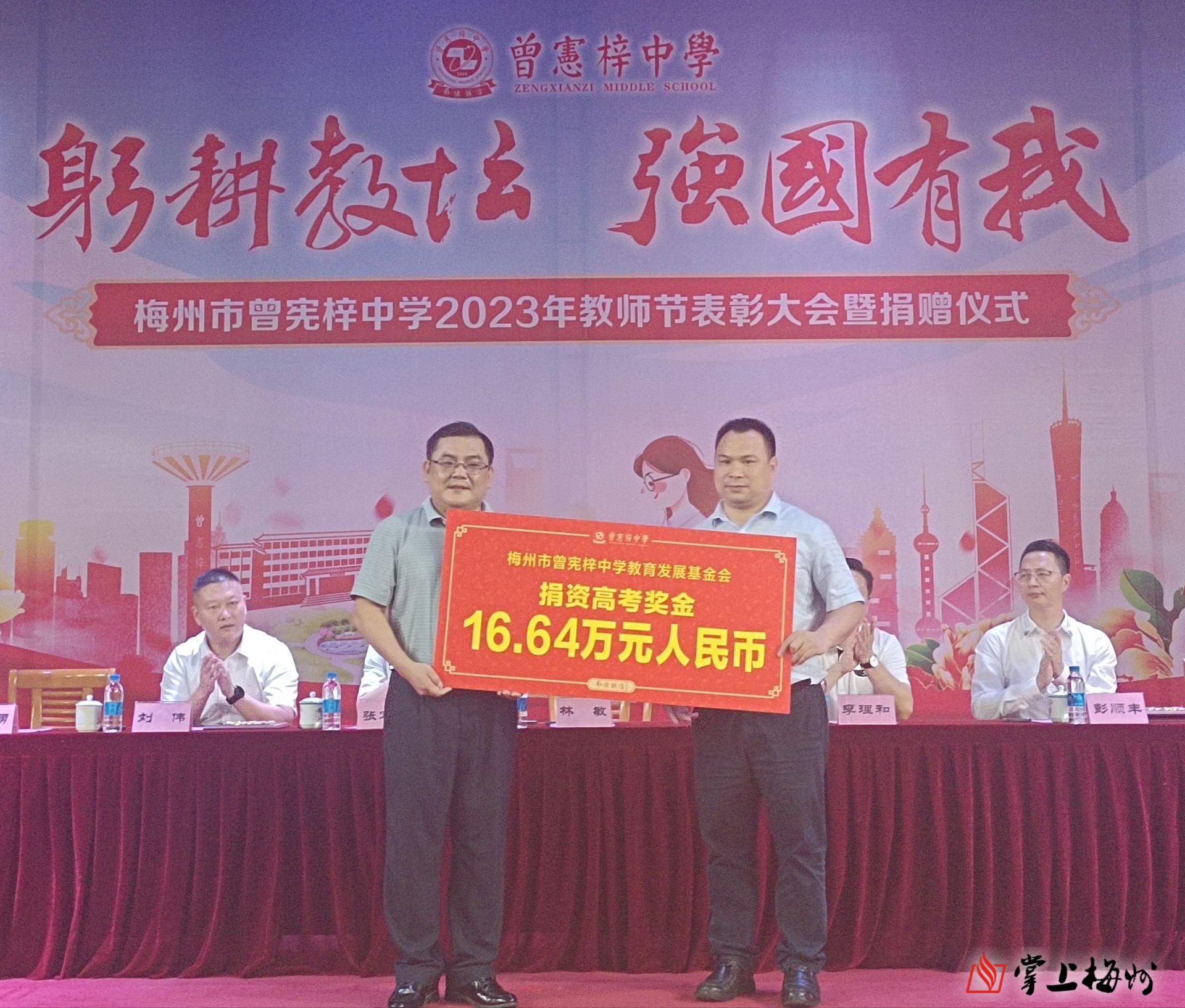 掌上梅州讯 一年年春华秋实,一载载桃李芬芳。9月8日下午,梅州市曾宪梓中学召开2023年教师节表彰大会暨捐赠仪式,表彰先进,树立典型,进一步激励教师争先创优,营造校园尊师重教浓厚氛围。