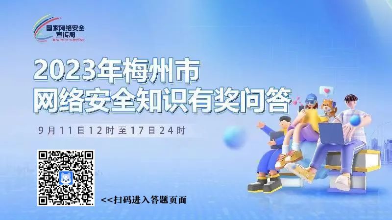 掌上梅州讯 记者近日从市委网信办获悉,2023年梅州市网络安全宣传周活动之一——“梅州市网络安全和数据安全及个人信息保护相关知识有奖竞赛”活动将于9月11日正式启动。