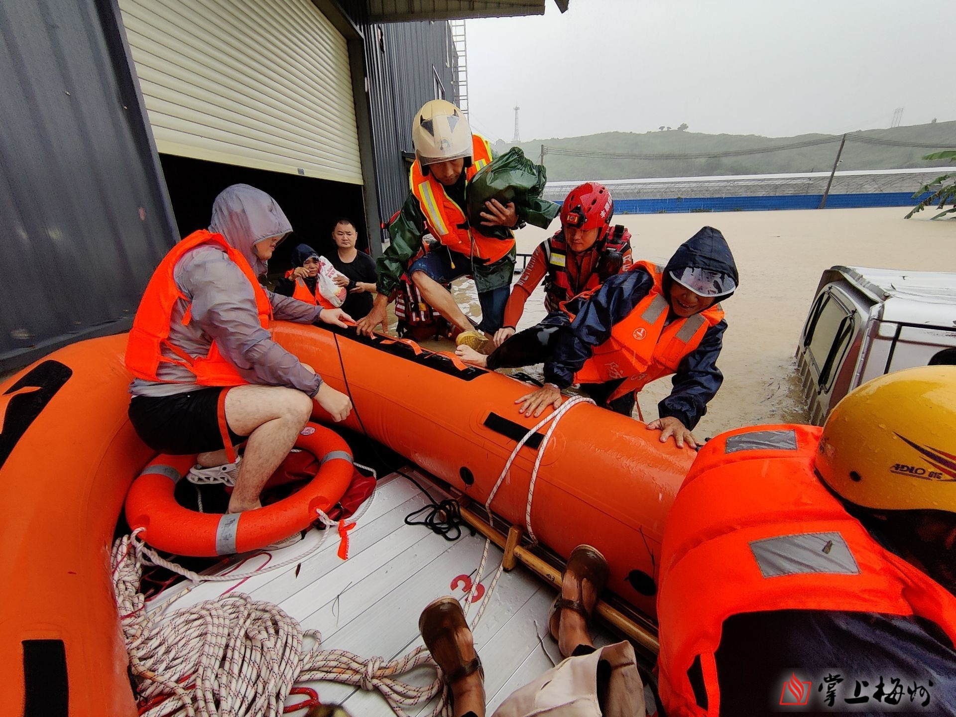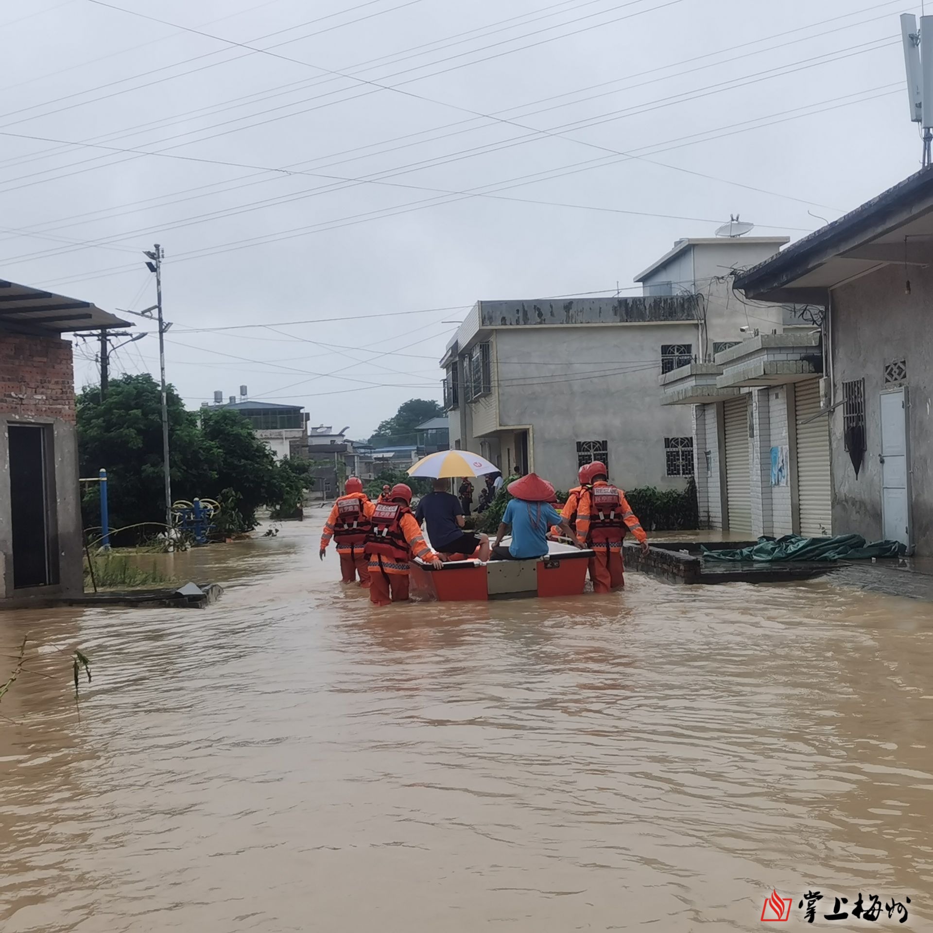 梅州市矿山救护队(梅州市应急救援支队)先后派出3批36人的应急救援力量,携带指挥车、运兵车、装备车、橡皮艇、船外机等装备,分批奔赴大埔枫朗镇、高陂镇、丰顺县黄金镇等救灾一线,经过一天一夜的奋战,帮助4000多名群众成功转移到安全地点。