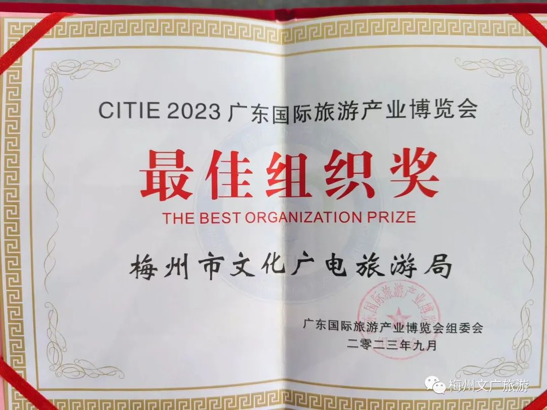 本届旅博会梅州市精心组织各县(市、区)文化旅游部门和20多家文化旅游企业参展,全方位推介梅州丰富的文旅资源,多维度展现客家形象。连日来,我市组织的活动和参展项目不仅得到省文化和旅游厅的认可和肯定,也吸引了众多宾客前来参观,更引起媒体的广泛关注。梅州市文化广电旅游局荣获此次广东旅博会“最佳组织奖”荣誉称号。