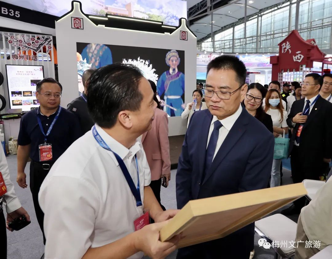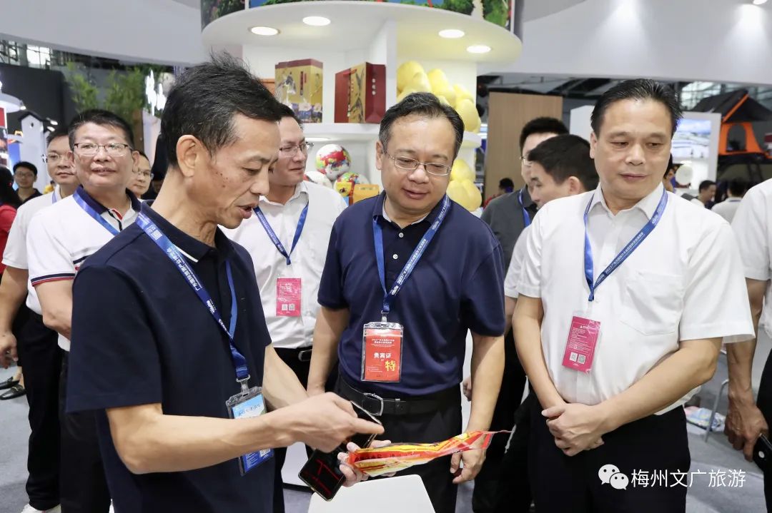 广东省文化和旅游厅党组书记、厅长李斌,党组成员、副厅长赵红,省纪委监委驻省文化和旅游厅纪检监察组组长陈小娟,梅州市委常委、副市长赵东等省、市领导到梅州展馆参观指导