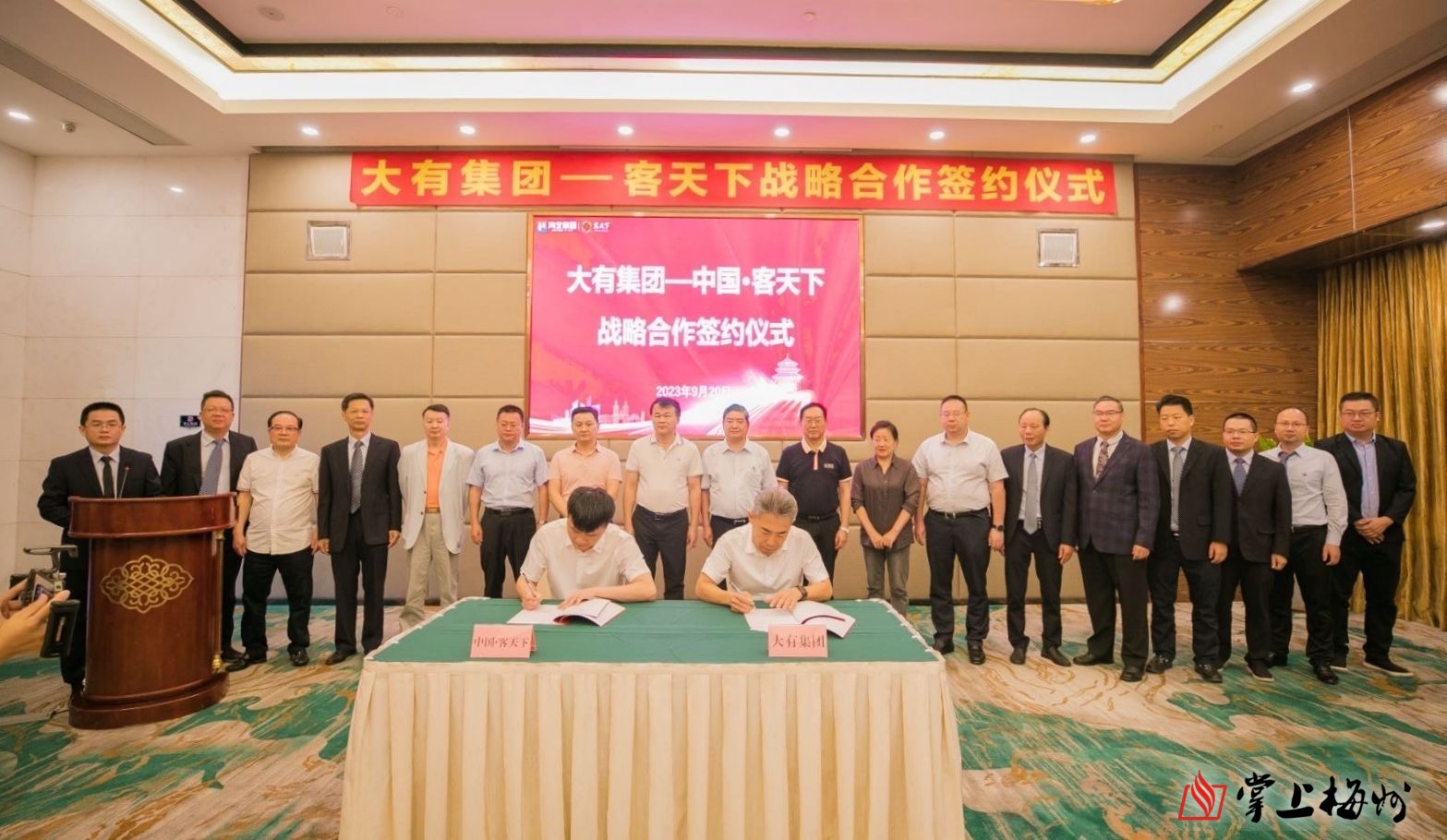 掌上梅州讯 9月20日上午,大有数字资源有限责任公司、广东客天下农旅投资运营股份有限公司在梅城举行战略合作签约仪式,双方在互惠互利的基础上,将利用各自专长,互为平台,在文旅项目、农旅开发、乡村振兴、产学研、数字资源等领域展开合作,结成深度战略合作伙伴关系,以获得良好的社会效益和投资回报。