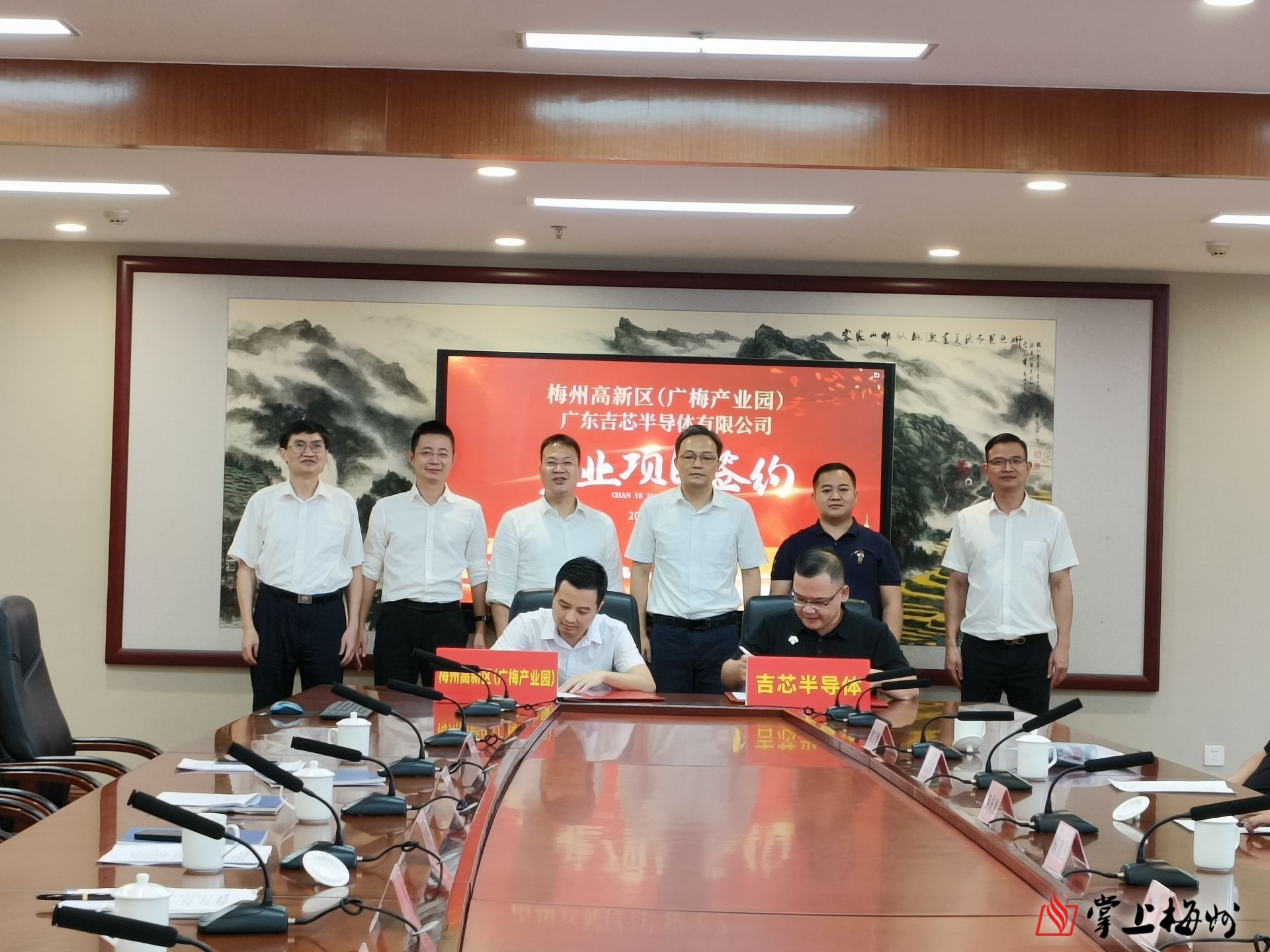 掌上梅州讯 9月21日,广梅产业园与承达集团、鸿翔半导体、吉芯半导体等3个优质项目举行签约仪式。梅州市政府党组成员、副市长蒋鲲,梅州市政府党组成员,广梅指挥部指挥长张文杰、企业家代表出席签约仪式,梅州市商务局、广梅园管委会等相关负责同志参加仪式。广梅指挥部副指挥长、广梅园党工委书记、管委会主任林满山主持活动。