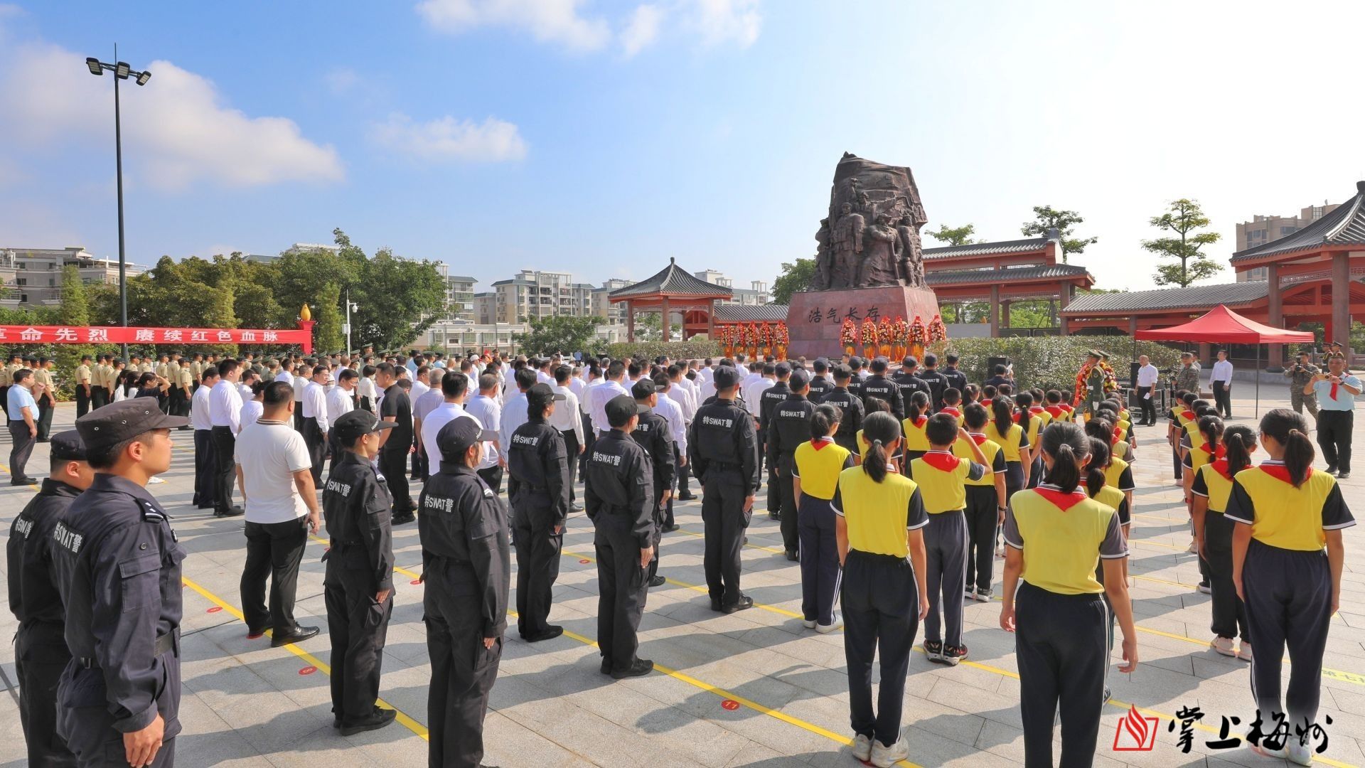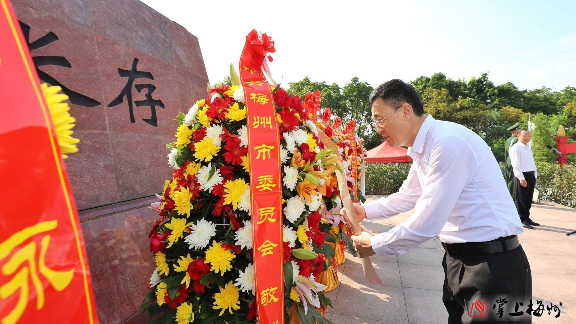 掌上梅州讯 9月30日是国家设立的烈士纪念日,当天上午,市委、市政府在市红色文化公园(剑英公园)山顶纪念广场举行梅州市2023年烈士纪念日烈士公祭活动。市委书记马正勇等市领导与社会各界代表一起,向英雄烈士雕塑敬献花篮,缅怀革命先烈,赓续红色血脉,汇聚奋进新征程、建功新时代的磅薄力量。