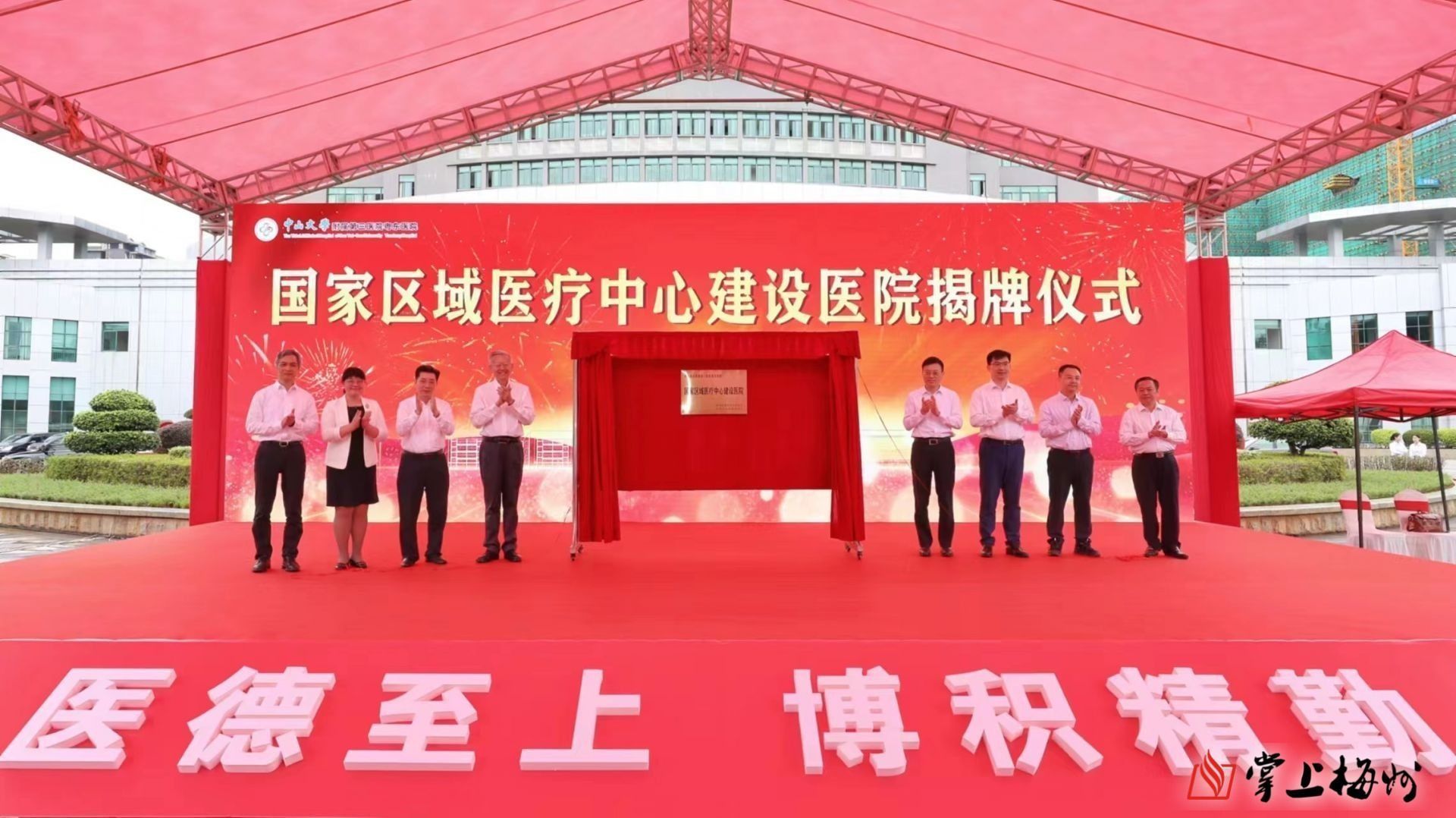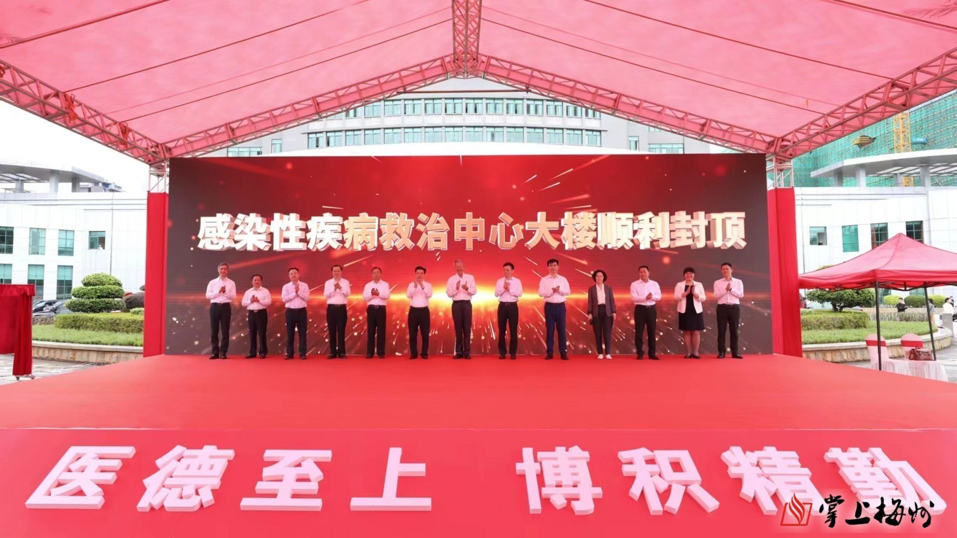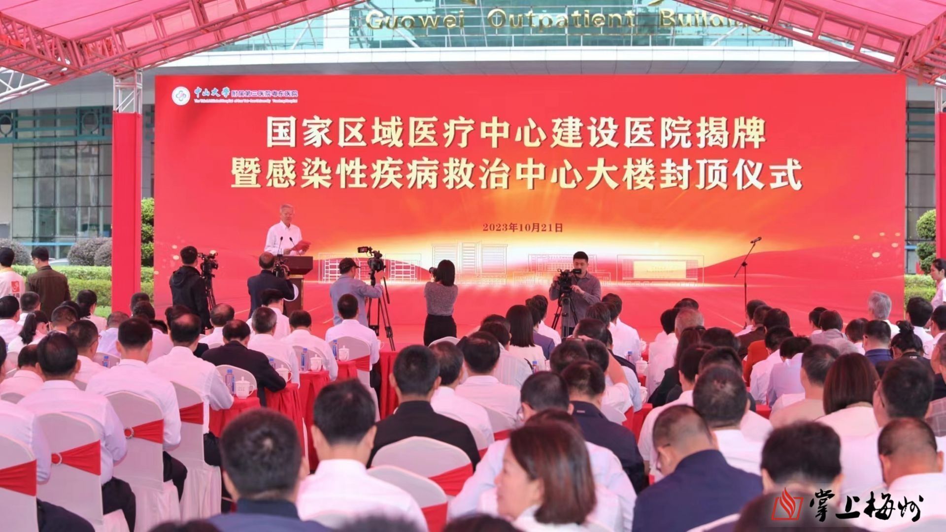 掌上梅州讯 10月21日,中山大学附属第三医院粤东医院国家区域医疗中心建设医院揭牌暨感染性疾病救治中心大楼封顶仪式举行。中山大学党委书记陈春声,市委书记马正勇,市委副书记、市长王晖出席活动。