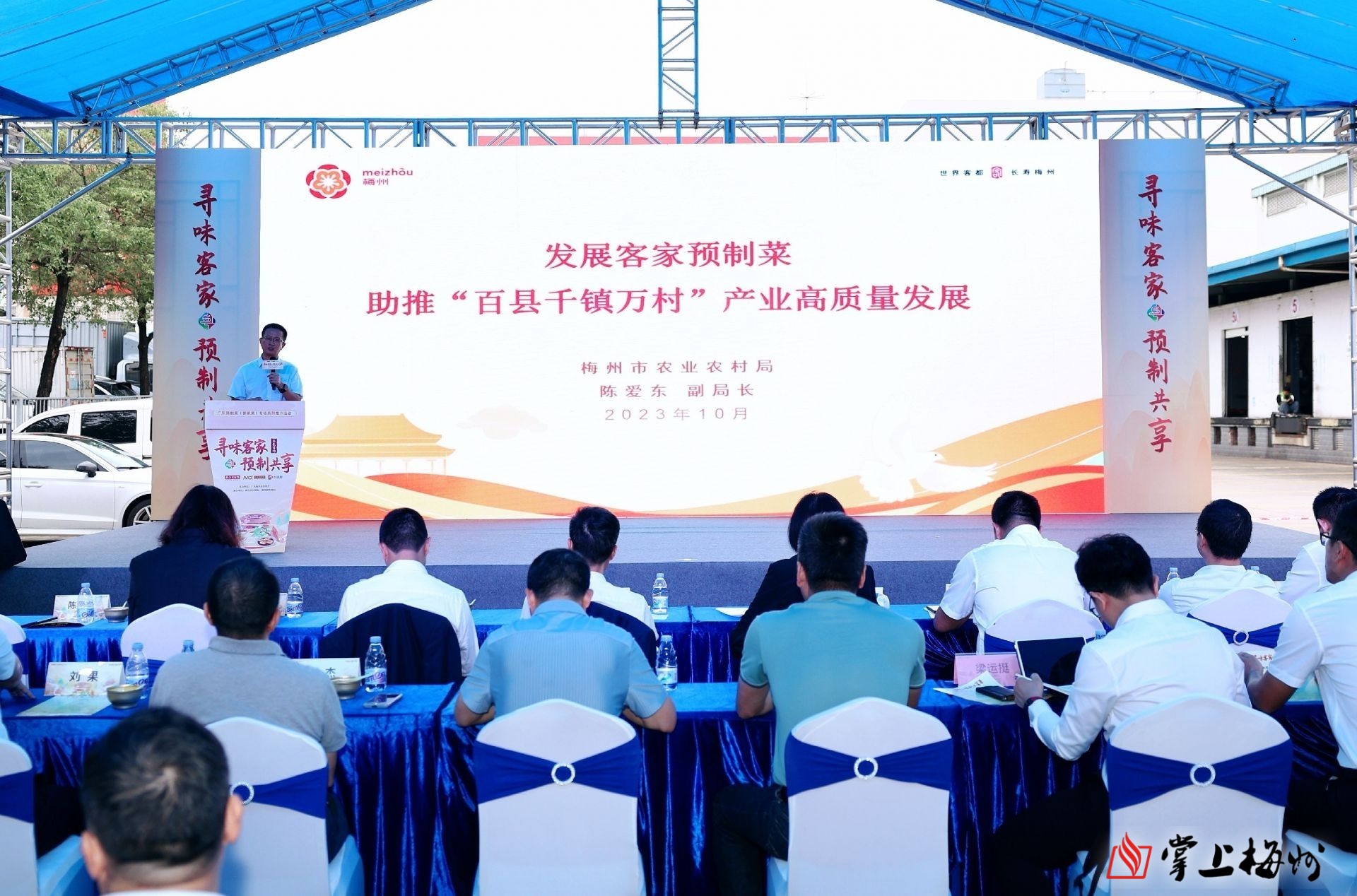 掌上梅州讯 10月20日下午,广东预制菜(客家菜)专场系列推介会在东莞市大岭山镇信立国际农产品贸易城举办。市农业农村局组织我市2家预制菜企业参加推介,将梅菜扣肉、客家盐焗鸡等客家预制菜推向粤港澳大湾区市场。
