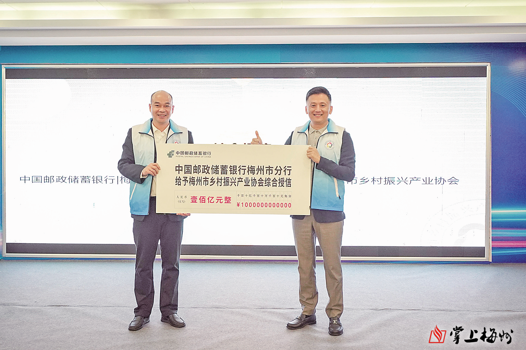 邮储银行梅州市分行给予梅州市乡村振兴产业协会综合授信100亿元。