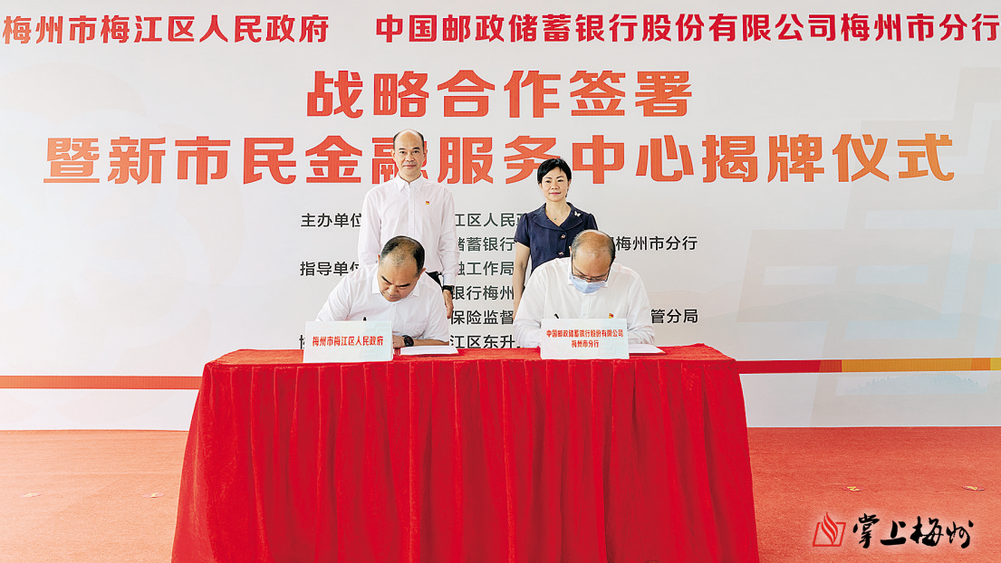 邮储银行梅州市分行与梅江区政府成功签署战略合作协议。