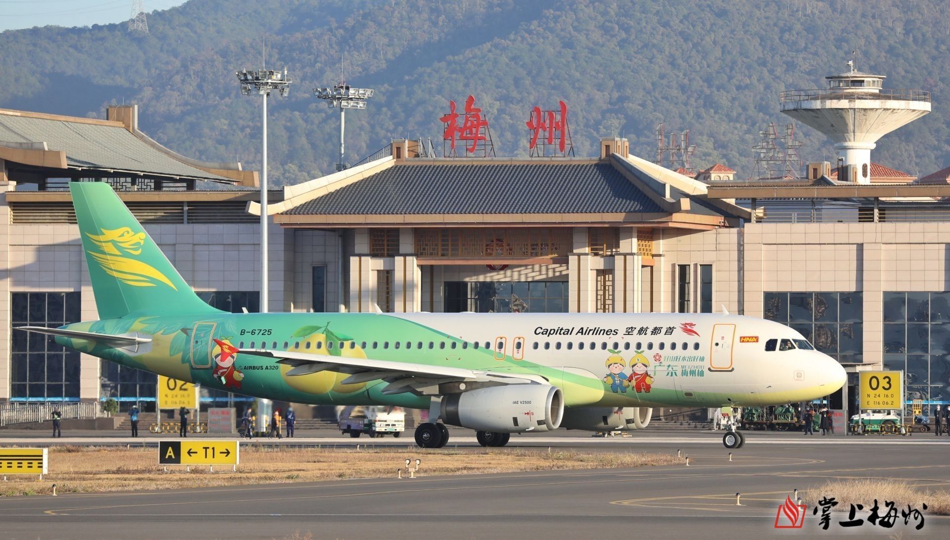 “广东梅州柚号”机身由梅州市花“梅花”、梅州柚、吉祥物“客客”“都都”和代表梅州“绿水青山”的色系及图案组成,还有“好山好水出好柚 广东梅州柚子”的标语,具有广东梅州柚特色。在客商大会期间,由“广东梅州柚号”搭载海内外客商嘉宾来梅,将进一步提升梅州特色农产品的品牌知名度,向世界推荐梅州柚国家地理标志产品,更有助打响梅州柚品牌,让绿色优质的“梅州味道”农产品香飘国内外市场。