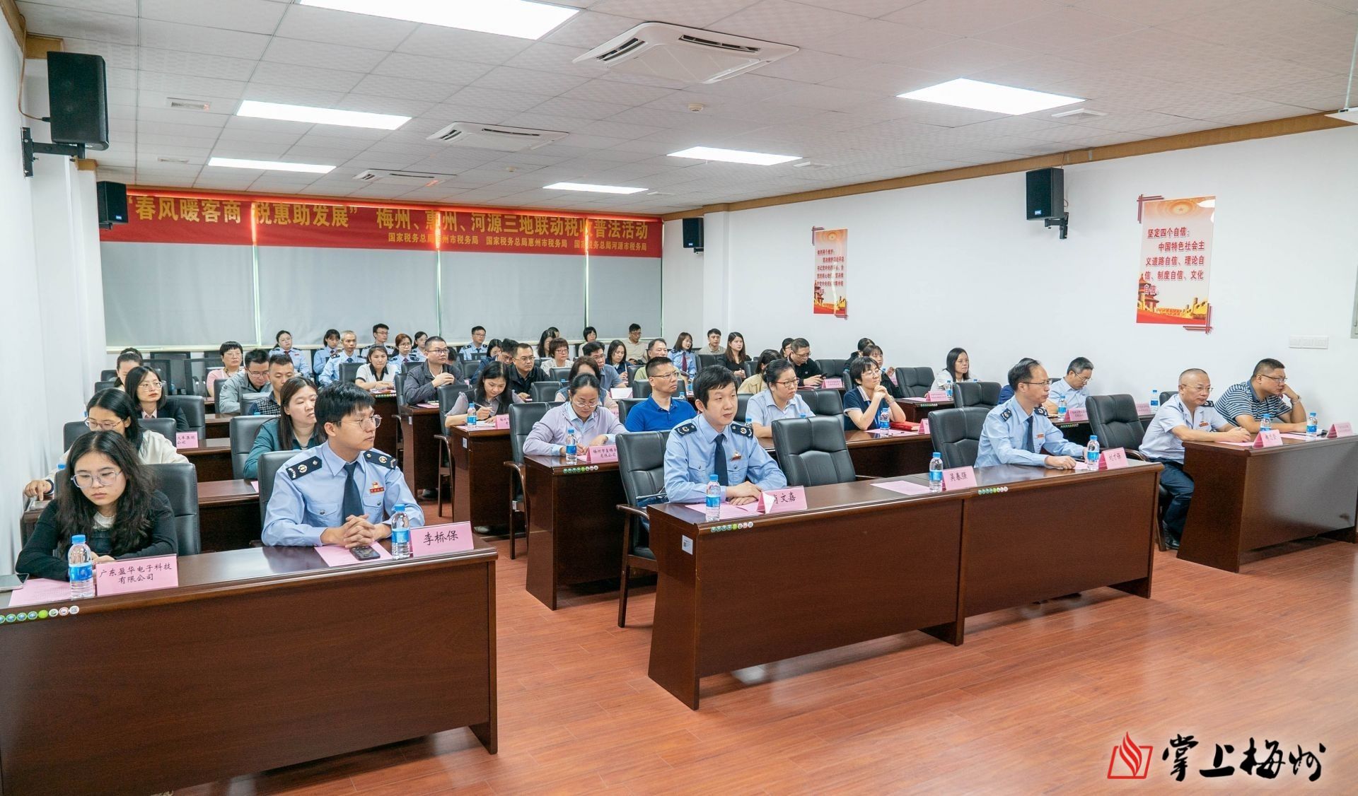 掌上梅州讯 为迎接第六届世界客商大会,更好服务广大客商及实体企业,11月1日上午,梅州、惠州、河源三个客家地区税务部门联合开展“春风暖客商 税惠助发展”税收普法活动,充分发挥税费优惠政策积极作用,助力企业高质量发展。