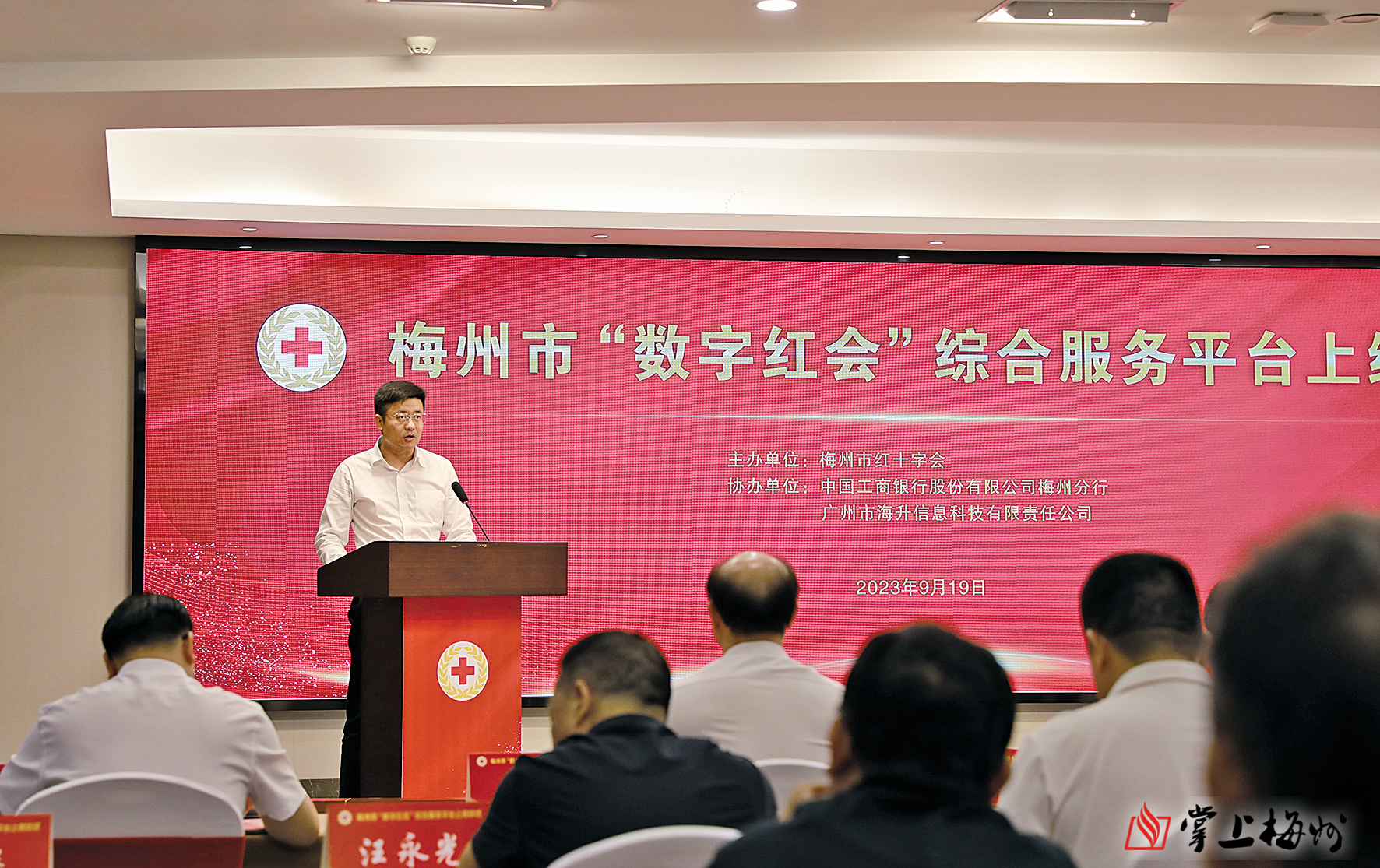 2023年9月,工行梅州分行党委副书记、副行长陈光远参加梅州市“数字红会”综合服务平台上线仪式并致词。