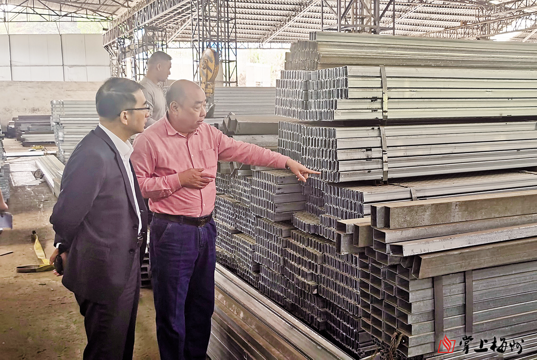 2023年3月,工行梅州分行党委书记、行长陈明华(左)到制造业企业调研。