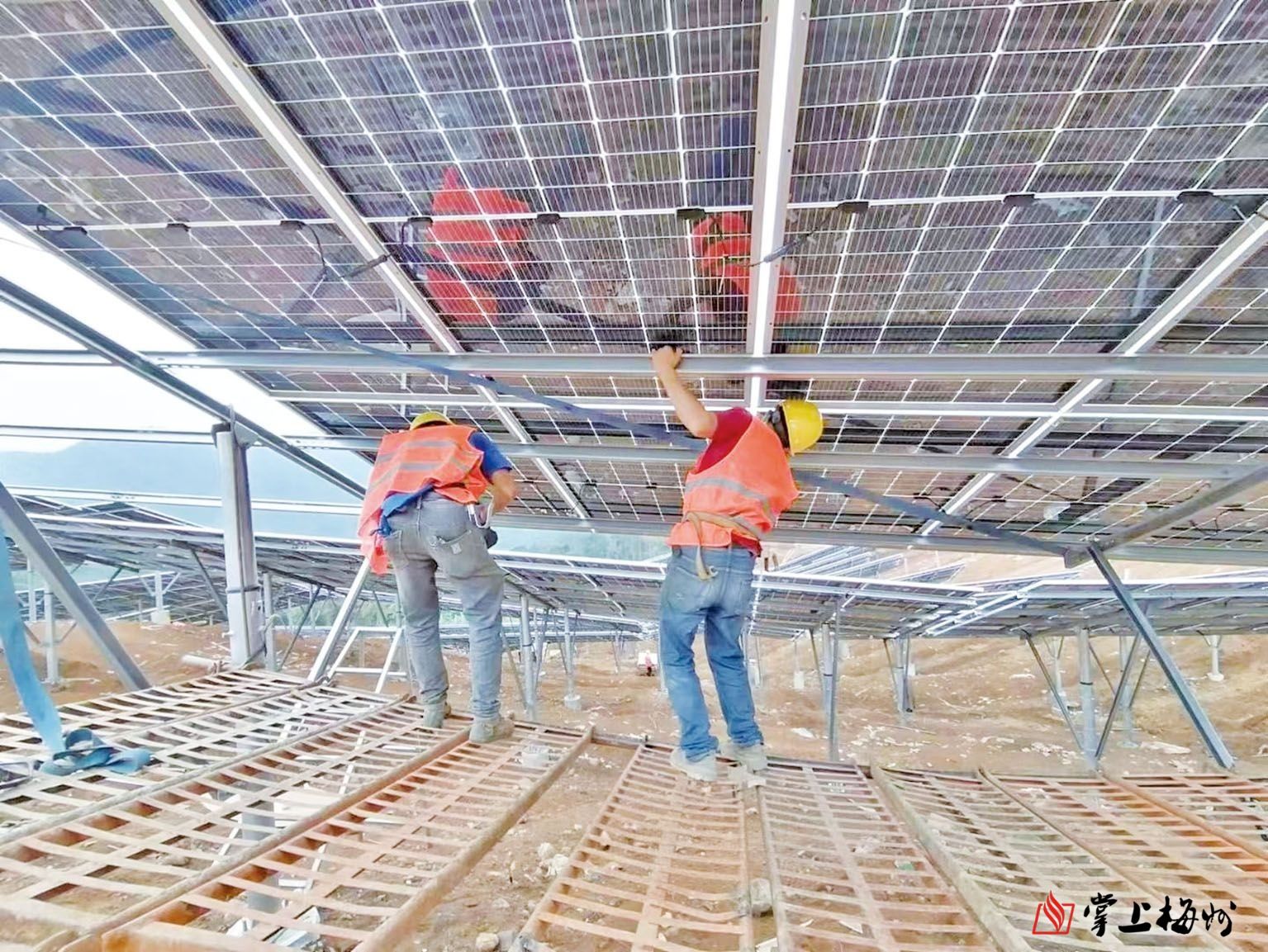 位于大埔县三河镇梓里村的大埔峡能100MW农光互补项目建设现场,连绵不断的山坡上,一排排光伏电池板在阳光照射下熠熠生辉。电池板下,一垄垄红彤彤的指天椒长势喜人。村民一边熟练采摘辣椒,一边连连称赞辣椒“红得太漂亮了”。