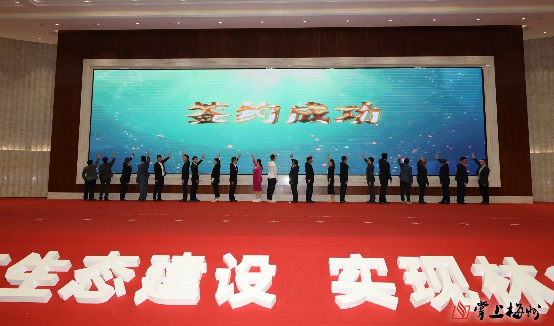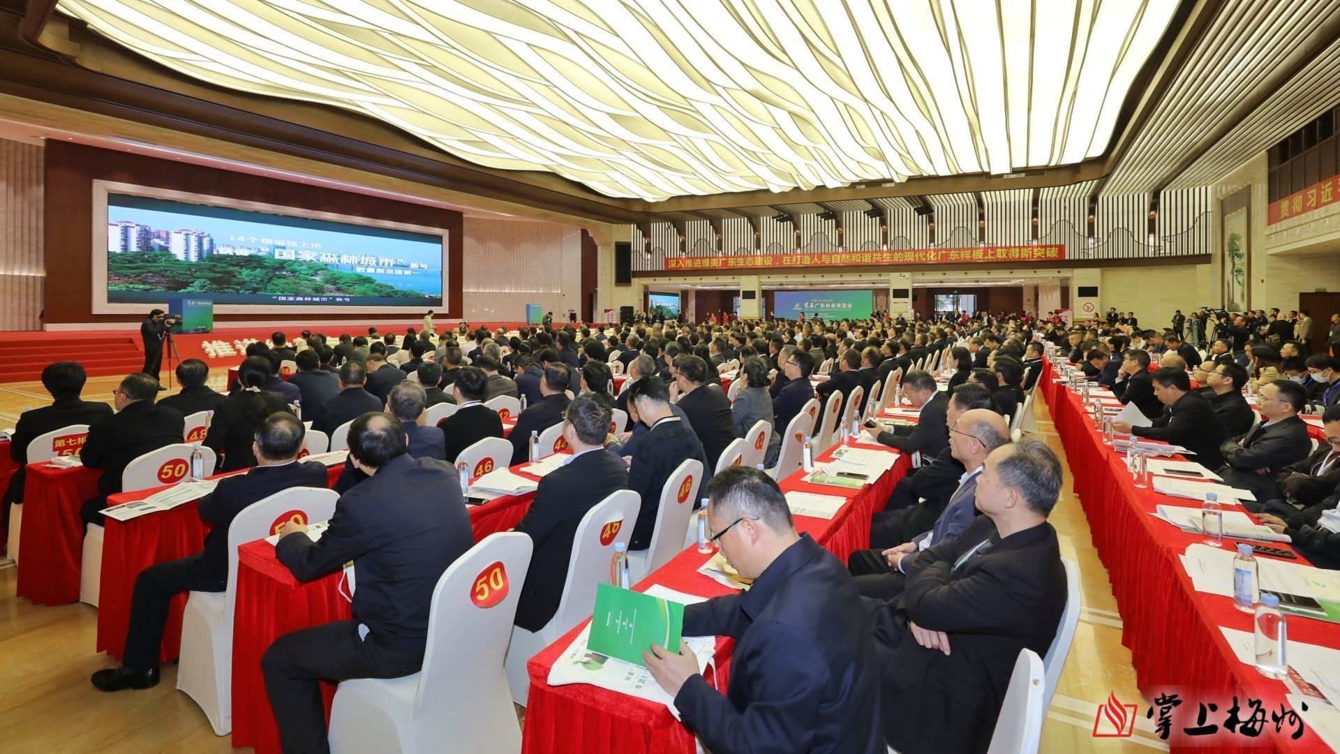 王晖在致辞中代表梅州市委、市政府向各位领导、嘉宾表示欢迎,向长期以来关心支持梅州发展的各界人士表示感谢。他表示,绿色是梅州最鲜明的底色、是梅州最普惠的福祉、是梅州最宝贵的财富,作为广东重要生态屏障,梅州将始终牢记习近平总书记殷殷嘱托,认真落实省委书记黄坤明对梅州提出“努力在生态建设上走在全省前列”的指示要求,坚定不移走生态优先、绿色发展之路,奋力打造人与自然和谐共生的中国式现代化梅州样板、美丽中国的梅州样板。期盼广大企业家慧眼识珠、抓住机遇,选择梅州、投资梅州,布局发展油茶、竹木、南药等特色产业,以及森林旅游、森林康养、碳汇交易等新业态,守绿换金、点绿成金、借绿生金。