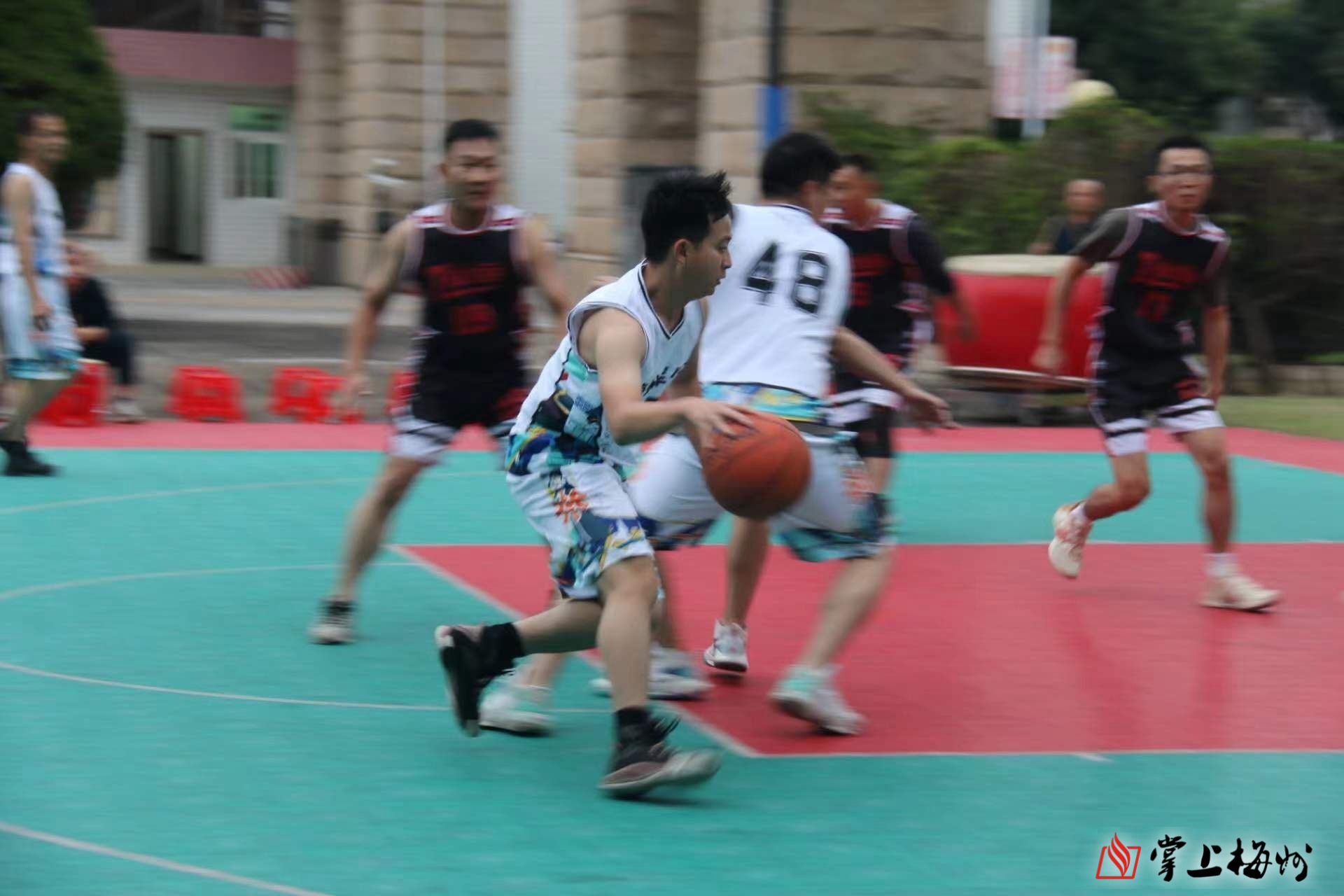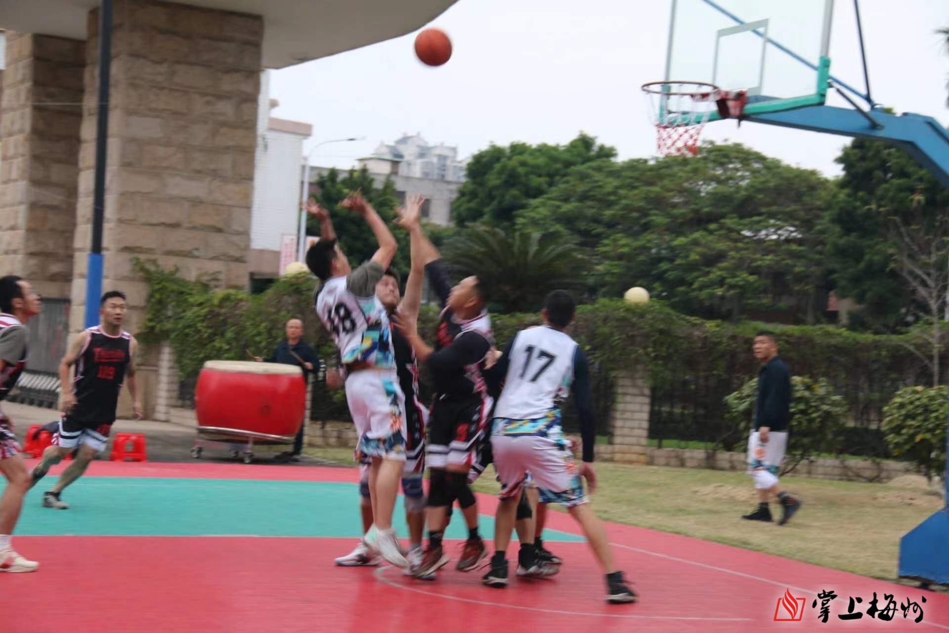 “我宣布——梅州军分区“国防·强军杯”篮球比赛活动开幕!”一声哨响,比赛开始。军分区机关与大埔县人武部篮球队率先上场比拼。赛场上,球员们个个斗志昂扬、配合默契,全力以赴争夺每一分,燃爆全场。随着比分交替上升,现场气氛不断升温,掌声、欢呼声此起彼伏,激情和喜悦充斥着整个球场。