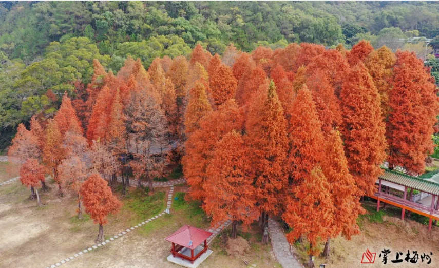 ▲每到秋冬时节,梅城泮坑的水杉林仿佛一幅浓墨重彩的天然油画,为大自然添一抹亮色(资料图 高讯 摄)