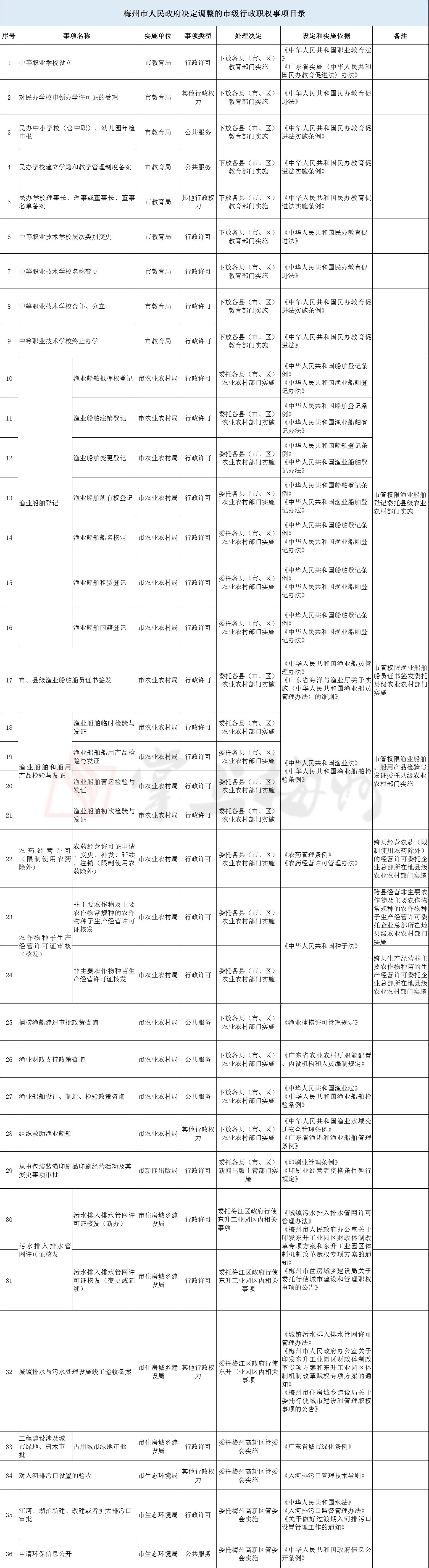 掌上梅州讯 近日,梅州市人民政府在门户网站发布《梅州市人民政府关于调整一批市级行政职权事项的决定》(以下简称“《决定》”),将36项市级行政职权下放或者委托至各县(市、区)和梅州高新区实施,持续深化我市“放管服”改革工作。