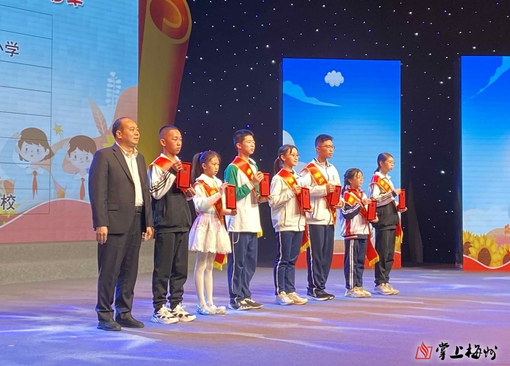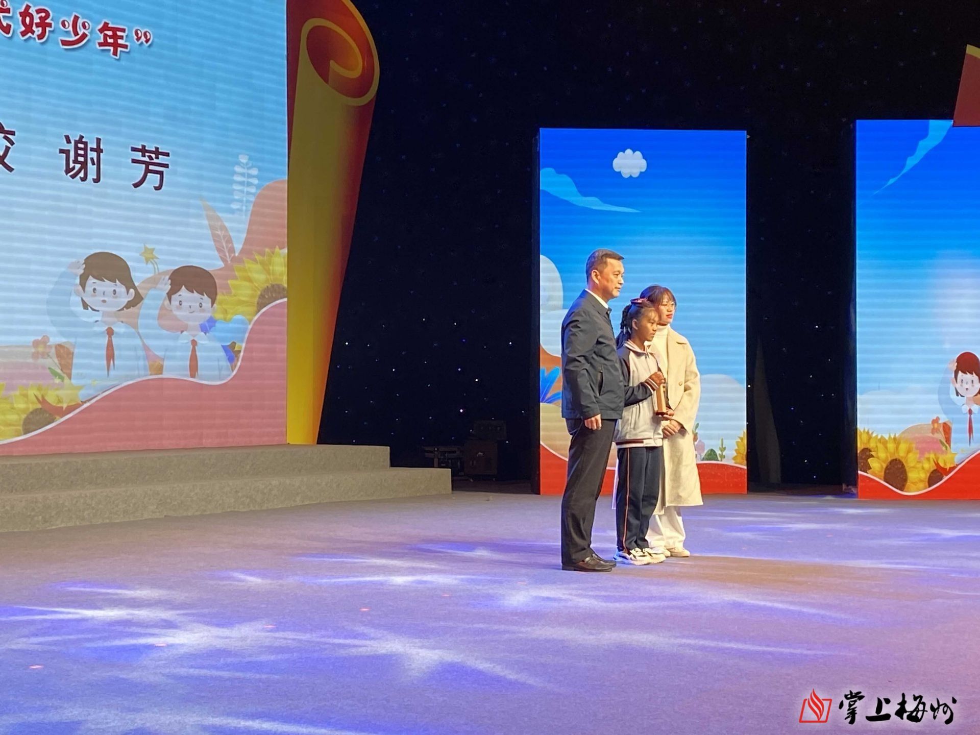活动为2023年广东“新时代好少年”谢芳以及20位2023年梅州“新时代好少年”颁授荣誉,宣传其先进事迹。活动还邀请优秀教师代表、身边好人代表和道德模范代表参加,寄语少年们珍惜美好年华,树立远大理想,砥砺意志品格,用不懈奋斗书写无悔青春。