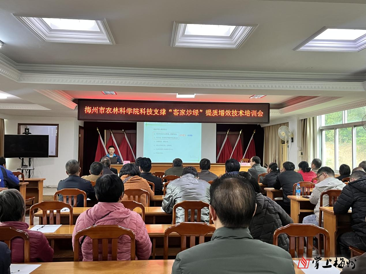 掌上梅州讯 12月7日,由梅州市农林科学院、广东省农业科学院梅州分院主办,梅州市农林科学院动物科学研究所、梅州市农林科学院茶叶研究所、梅县区梅南镇人民政府承办,乡村振兴驻梅县区梅南镇帮镇扶村工作队联合协办的“梅州市农林科学院科技支撑“客家炒绿”提质增效技术培训会”成功举办。