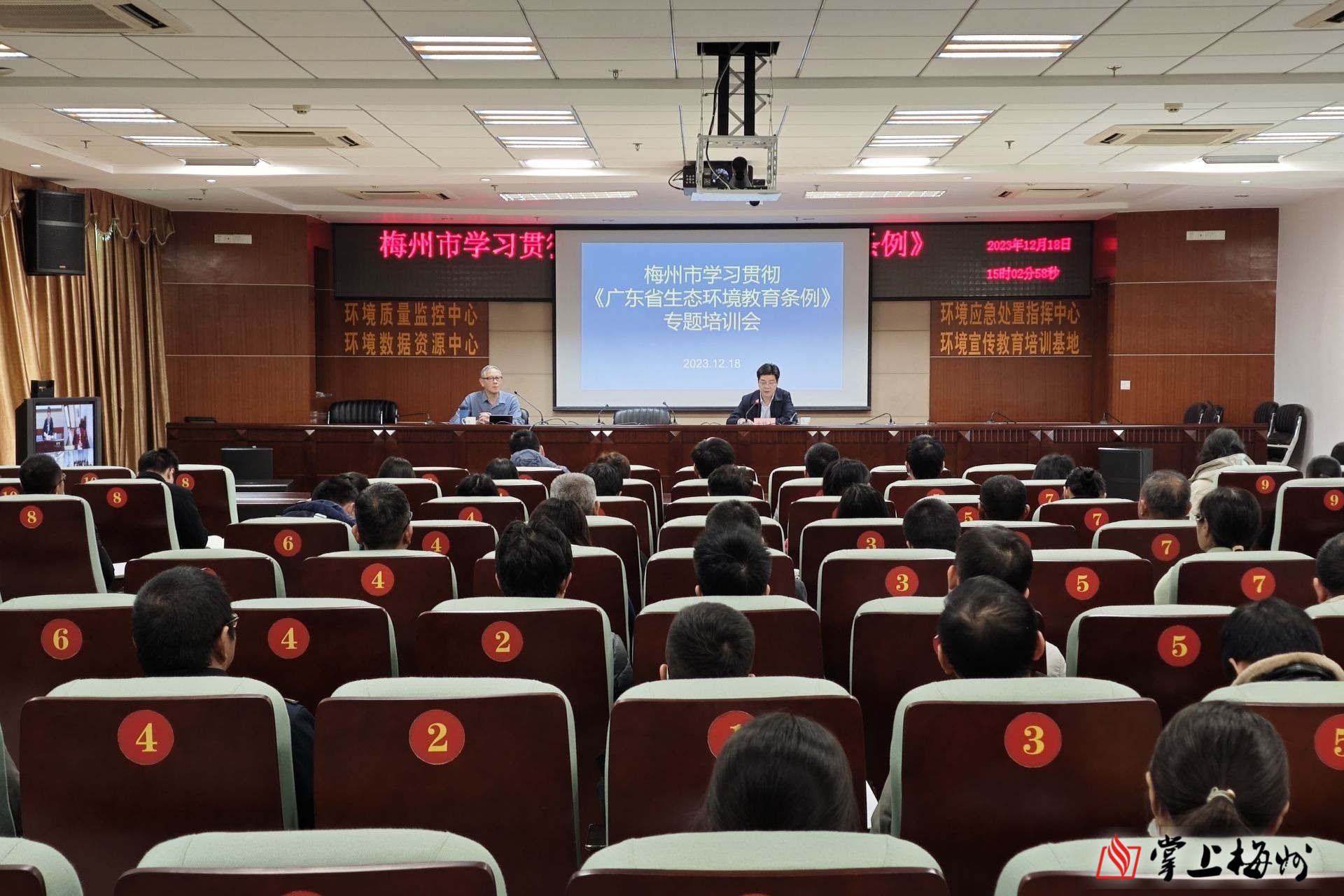 掌上梅州讯 12月18日下午,我市举办学习贯彻《广东省生态环境教育条例》专题培训会,培训通过会议视频系统连线形式举办。我市有关单位负责人,环境教育基地、环保设施开放单位、市直绿色学校单位代表以及市生态环境局全体干部职工在主会场参加培训,各县(市、区)分别设分会场。