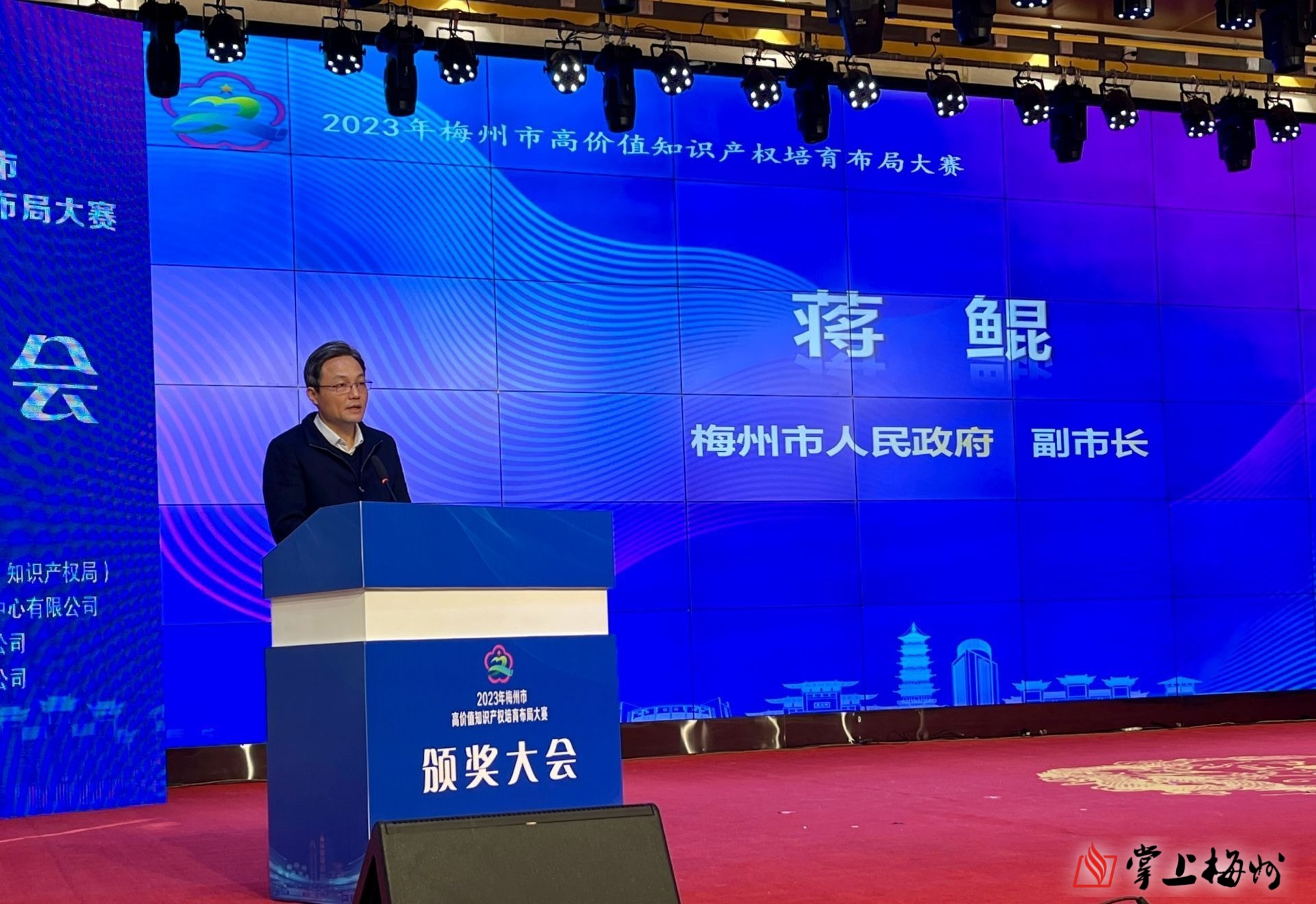 掌上梅州讯 12月22日下午,由梅州市市场监督管理局(知识产权局)主办的“培育梅州苏区高价值知识产权 对接融入粤港澳大湾区先行区建设”——首届梅州市高价值知识产权培育布局大赛(以下简称“梅高赛”)颁奖大会在梅城举行。副市长蒋鲲参加相关活动。
