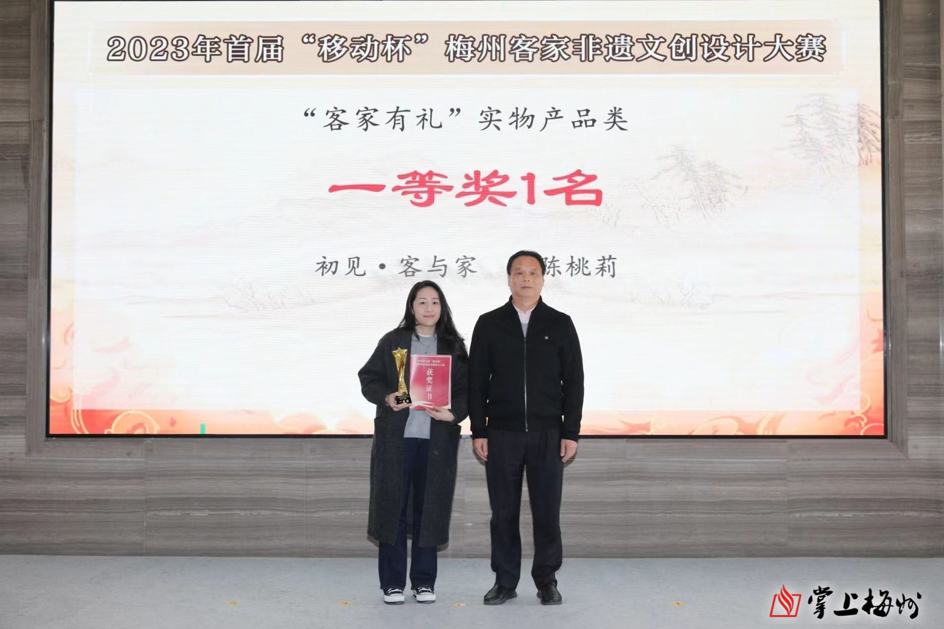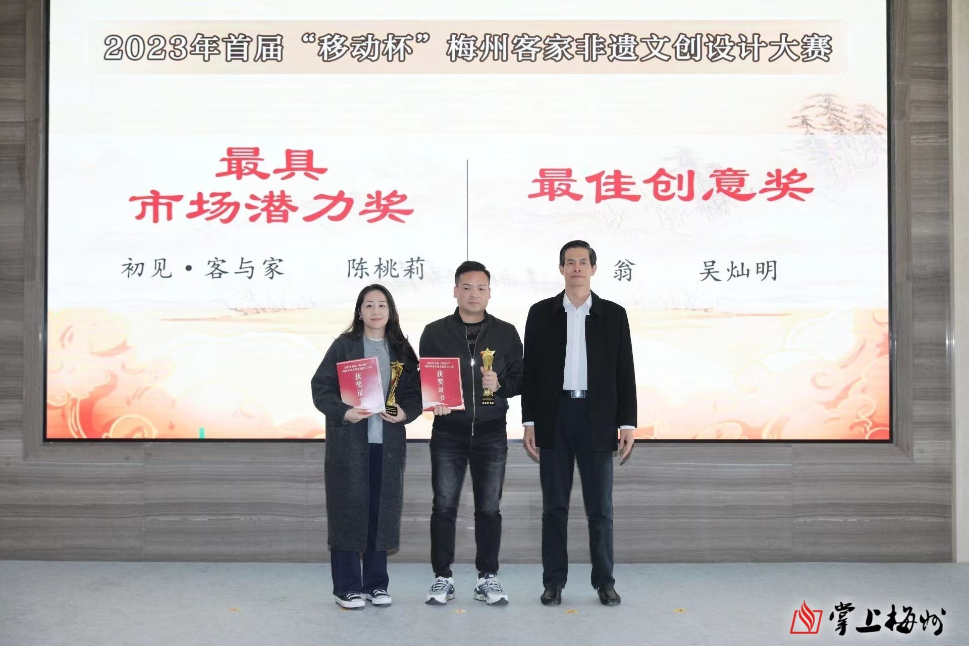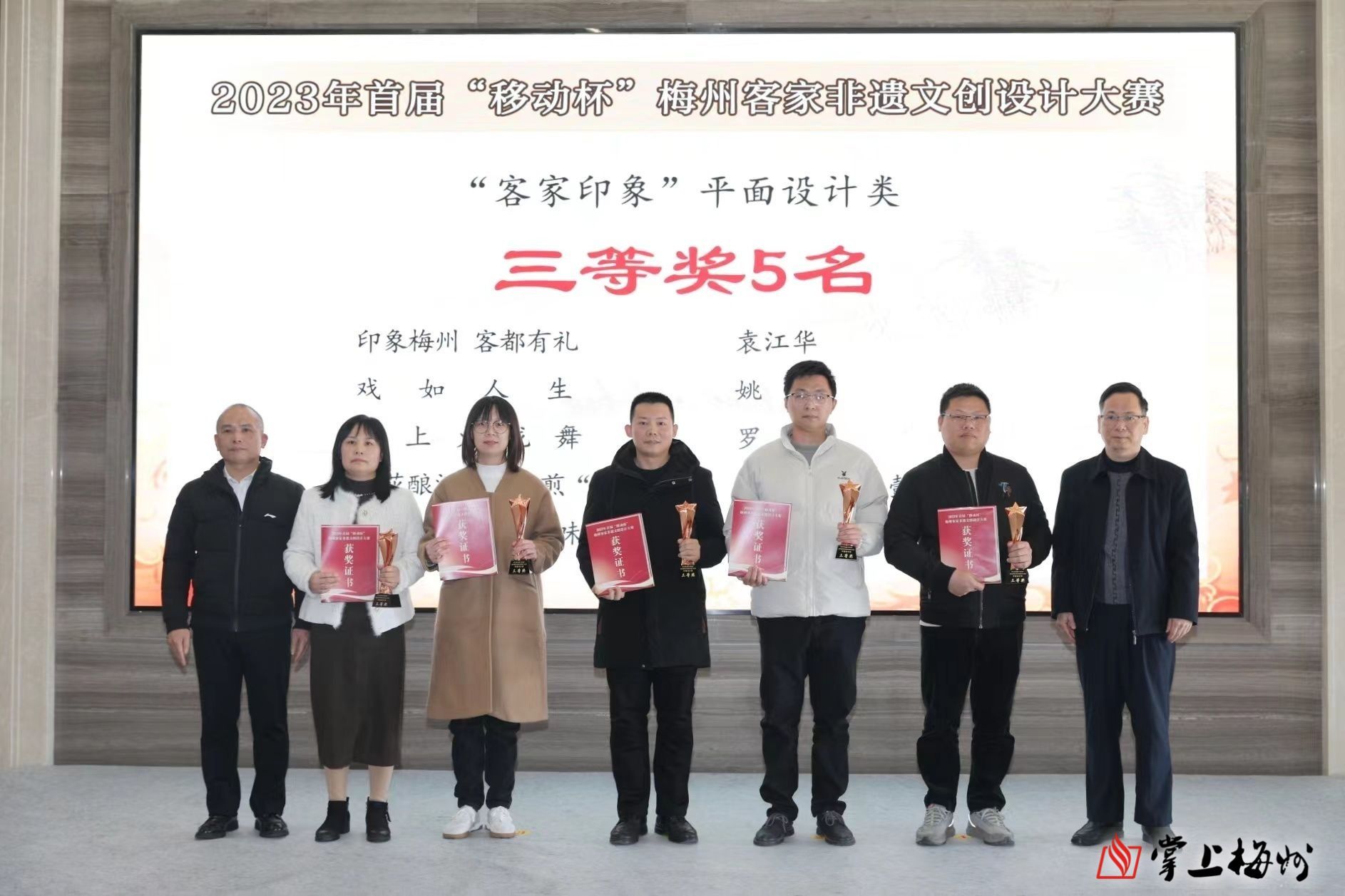 活动现场,市文化广电旅游局相关负责同志宣读首届“移动杯”梅州客家非遗文创设计大赛获奖作品名单。随后,领导嘉宾一一为获奖选手颁奖。颁奖仪式后,与会人员移步参观优秀作品展。大家纷纷表示,展品整体风格多样,既挖掘展示了梅州客家非遗文化特色,也体现了梅州文创的新活力。