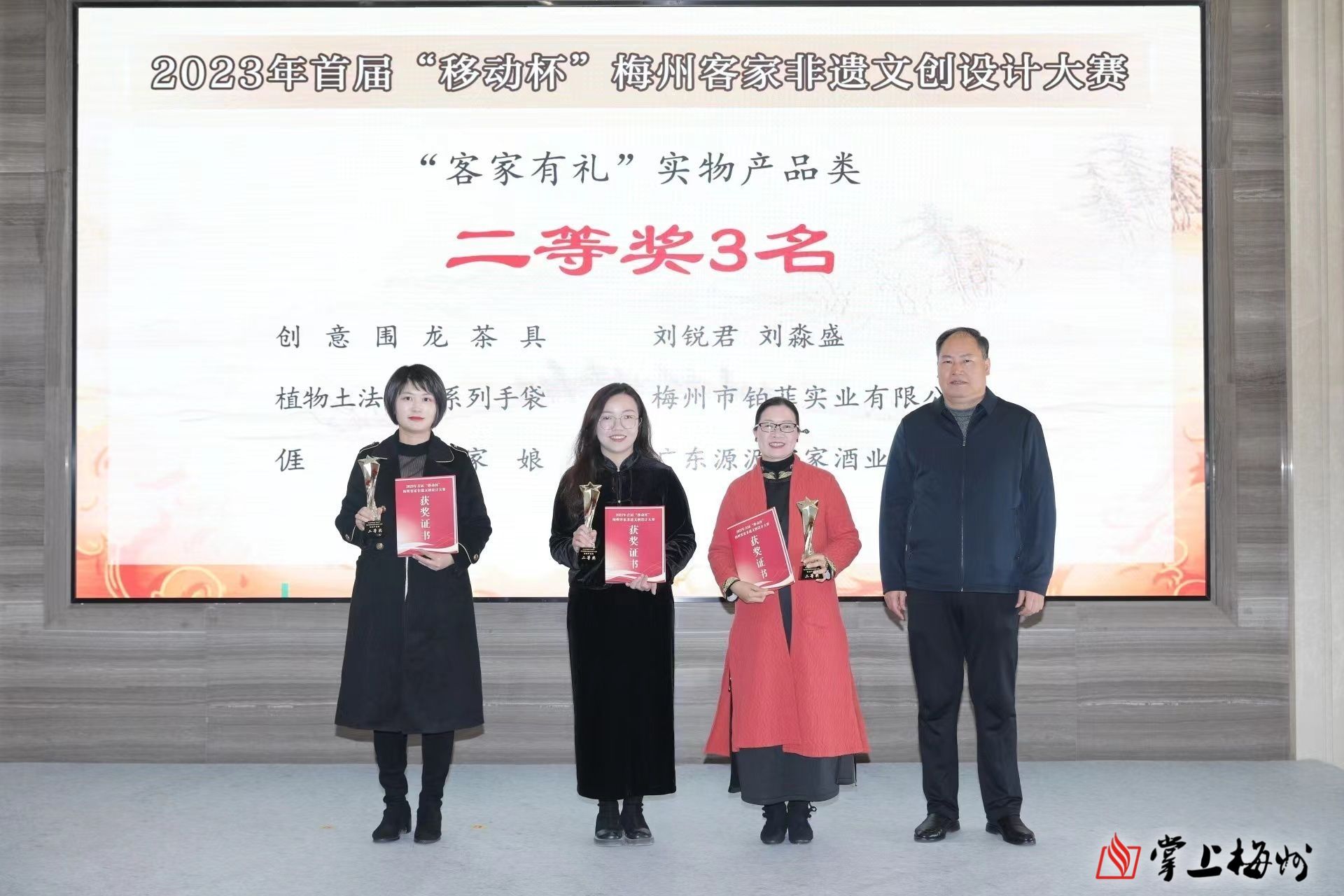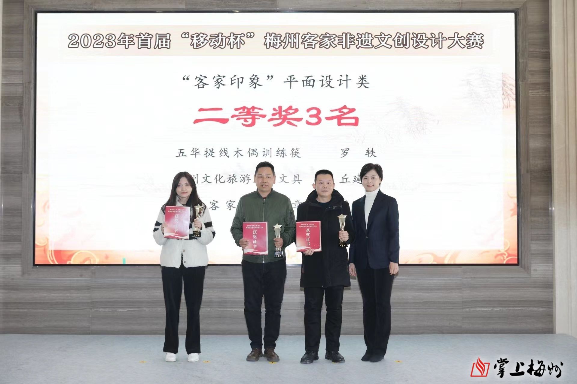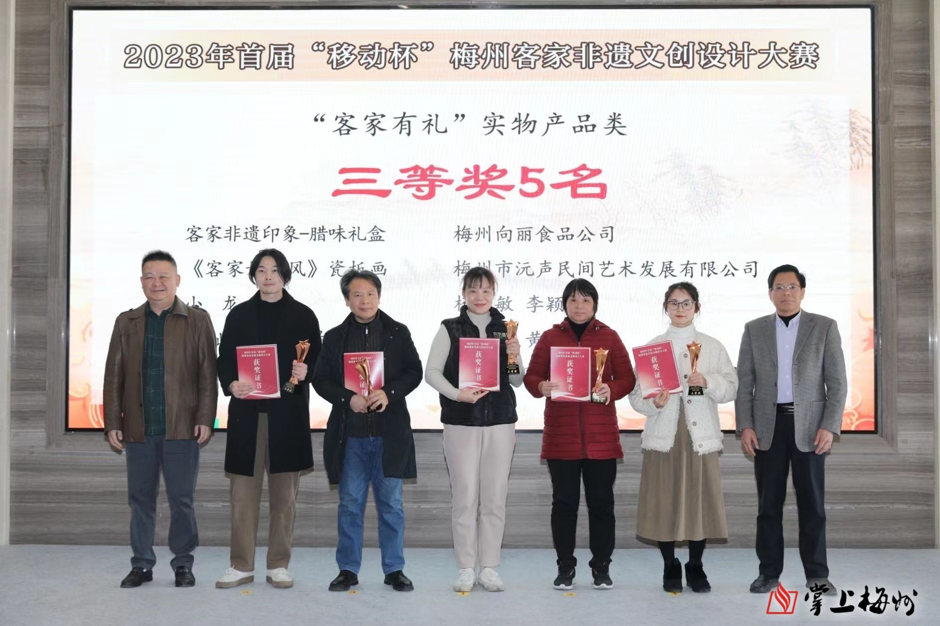活动现场,市文化广电旅游局相关负责同志宣读首届“移动杯”梅州客家非遗文创设计大赛获奖作品名单。随后,领导嘉宾一一为获奖选手颁奖。颁奖仪式后,与会人员移步参观优秀作品展。大家纷纷表示,展品整体风格多样,既挖掘展示了梅州客家非遗文化特色,也体现了梅州文创的新活力。