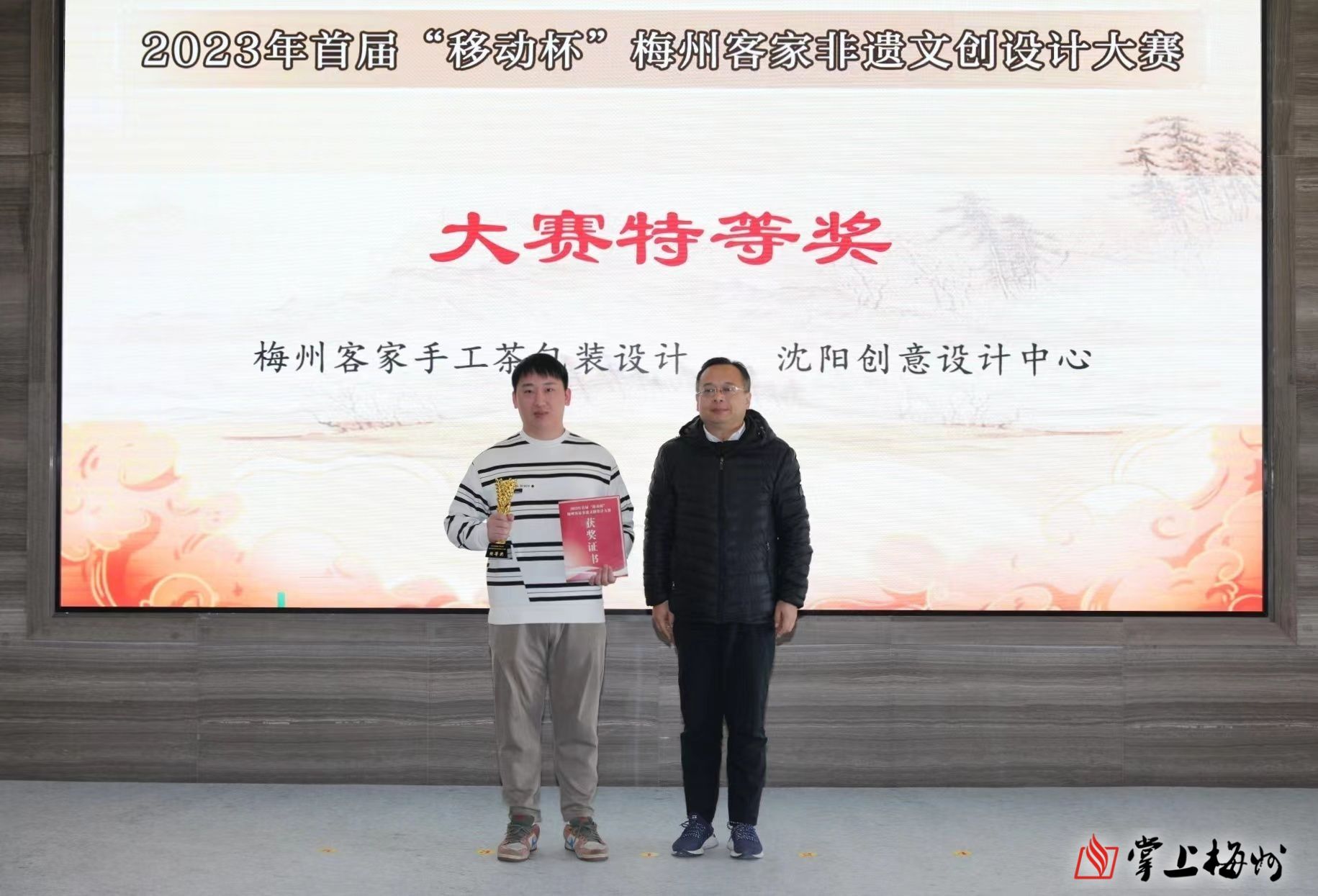 据介绍,2023年首届“移动杯”梅州客家非遗文创设计大赛由梅州市文化广电旅游局主办,梅州日报社承办,以“世界客都·‘非’凡有你”为主题。大赛在今年7月启动后,面向社会征集“客家有礼”实物产品类和“客家印象”平面设计类作品,共征集到485件作品,其中平面设计类作品329件、实物产品类作品156件。经过资料初选、实物审查、专家评议、公示等程序,由沈阳创意设计中心设计的作品“梅州客家手工茶包装设计”获大赛特等奖,由韶关学院吴灿明设计的作品“客翁”获平面设计类作品一等奖、最佳创意奖,由陈桃莉设计的作品“初见·客与家”获实物产品类作品一等奖、最具市场潜力奖。赛后,获奖佳作及精选的实物类作品集中在广东中国客家博物馆展出,展出时间为即日起至2024年1月21日,期间市民可免费观展。