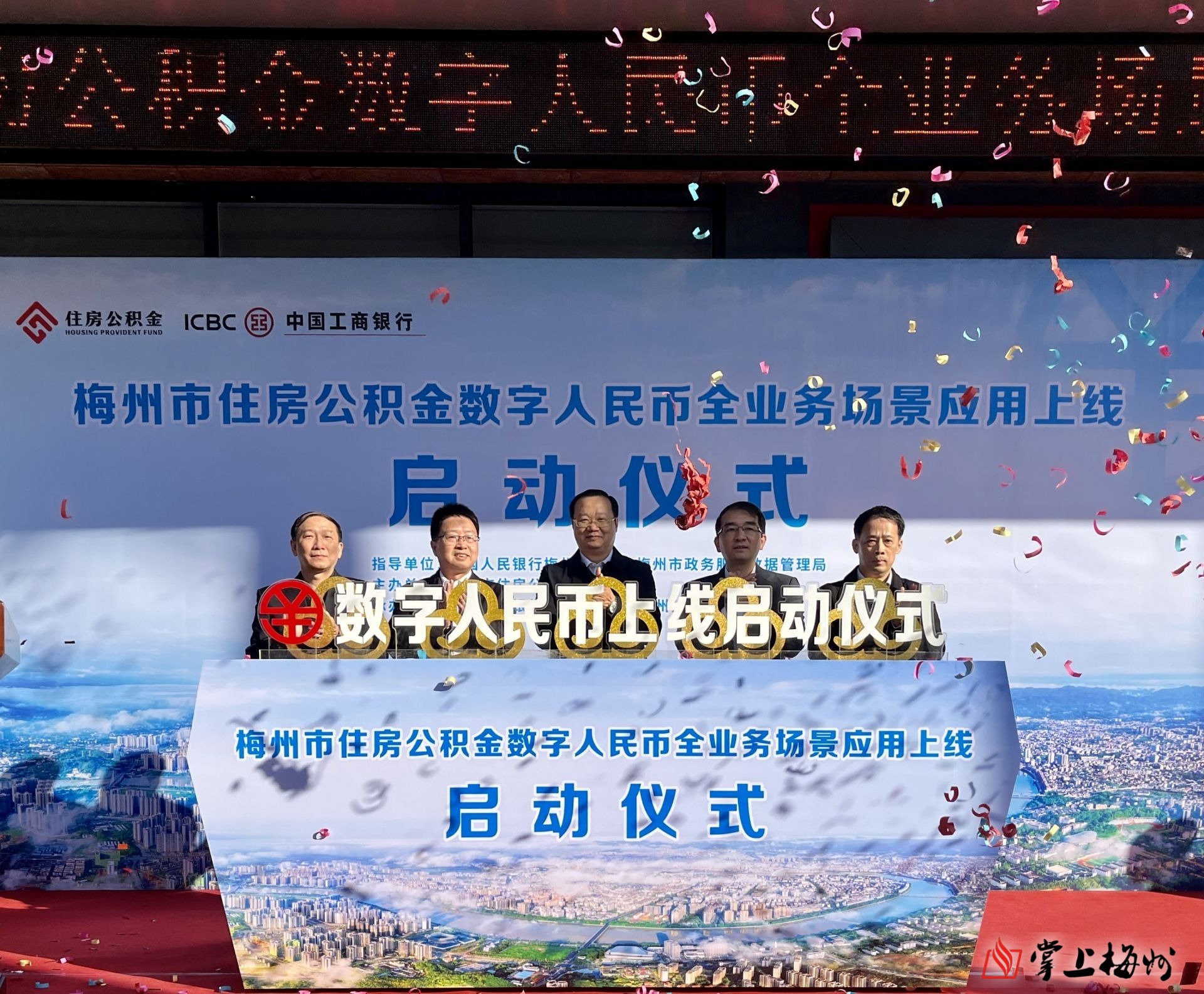 掌上梅州讯 12月29日,梅州市住房公积金数字人民币场景应用上线启动仪式在中国工商银行梅州分行举行。这标志着梅州市住房公积金管理中心成为全国首批接入国家住建部结算平台,实现数字人民币在全业务场景应用的中心,也是我市首个实现数字人民币全业务场景应用的单位。市政府副市长、秘书长陈亮出席活动。
