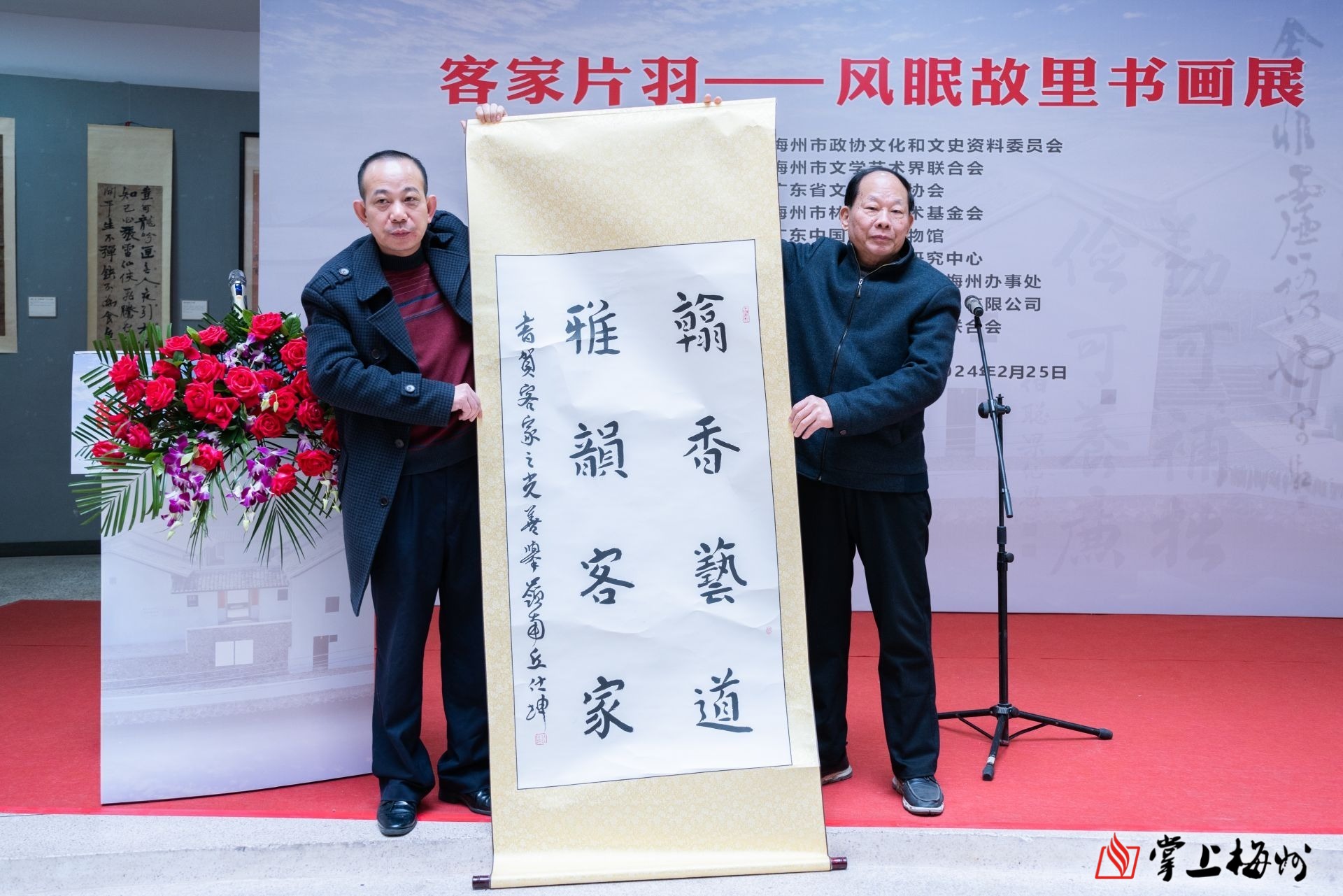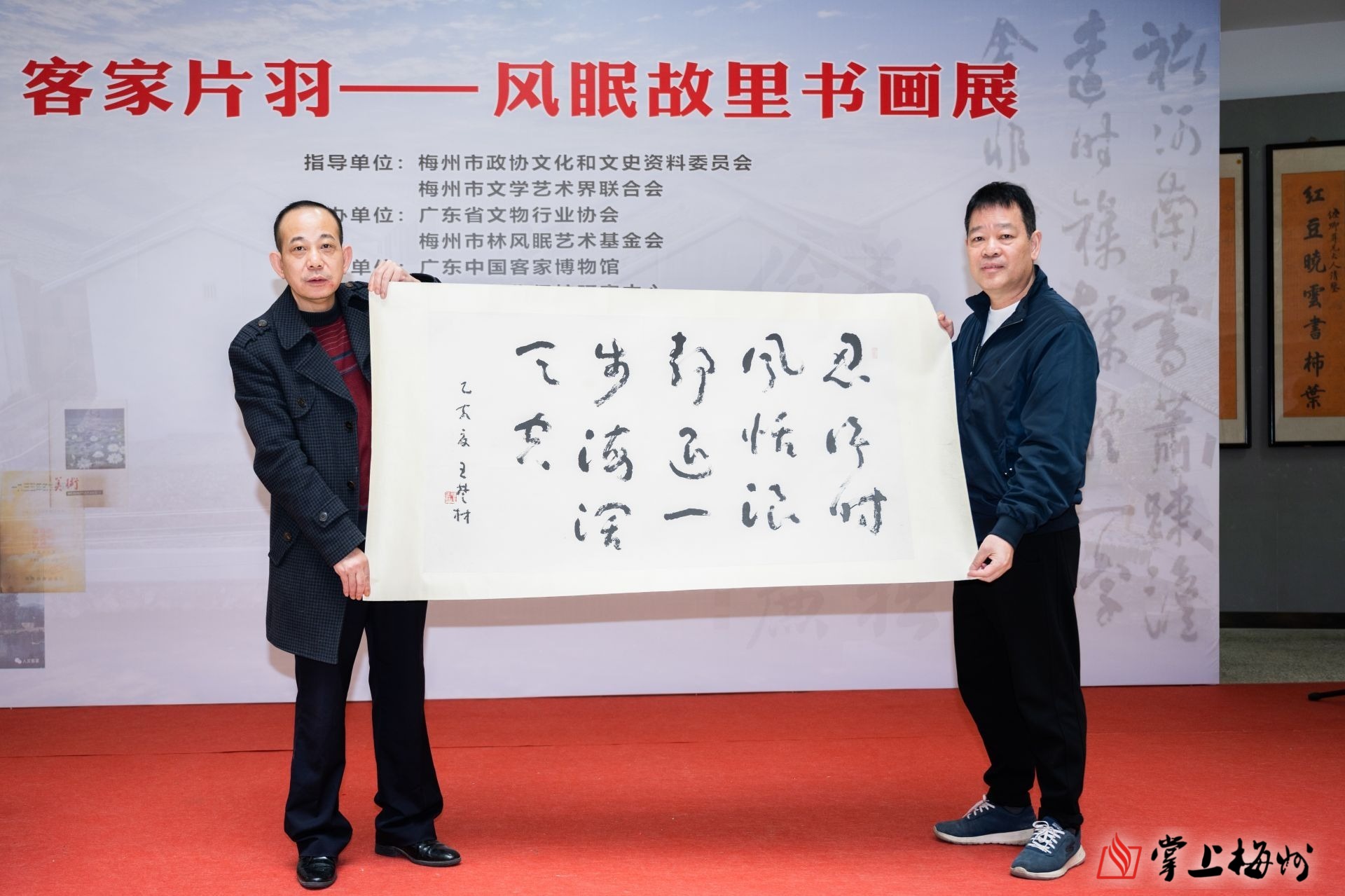 当天的开幕式获得文化艺术界的关注,广东省政府地方志办公室副主任丘洪松,梅州市人大原常务副主任、党组书记李俊夫,南方日报出版社原总编辑、广东省政府参事李钟声,嘉应学院原党委书记罗传厚,梅州市人大原副主任邓超基,深圳市文联原专职副主席、梅州市战略发展顾问杨宏海,梅州市林风眠艺术基金会理事长钟森昌等为开幕式揭幕,参加揭幕的还有广东省省情专家、省文物行业协会副会长罗雄,梅州市政协文史委专职副主委梁财生、市文联副主席吴朝晖。上午,来自江西、福建、香港、广州、深圳、潮汕地区、梅州本地的书画家、收藏家、文史工作者等200多人出席并参观书画展。