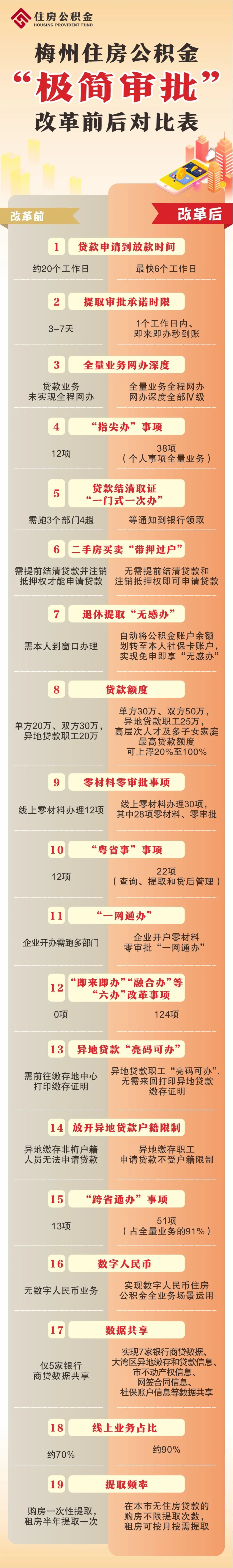 与此同时,公积金办理渠道也增加了不少。如今,企业群众可通过梅州公积金微信公众号、住房公积金网上办事大厅、粤省事等6大线上渠道办理公积金业务。“线上渠道全天候‘不打烊’,线下则分布在全市8个政务服务中心窗口,全市还有多个银行网点可提供业务办理服务。”相关负责同志不无自豪地向记者介绍,我市公积金“86N”业务办理模式让群众办事从以前“排队等候、往返跑动”转变为“指尖办、网上办、就近办、一次办”。