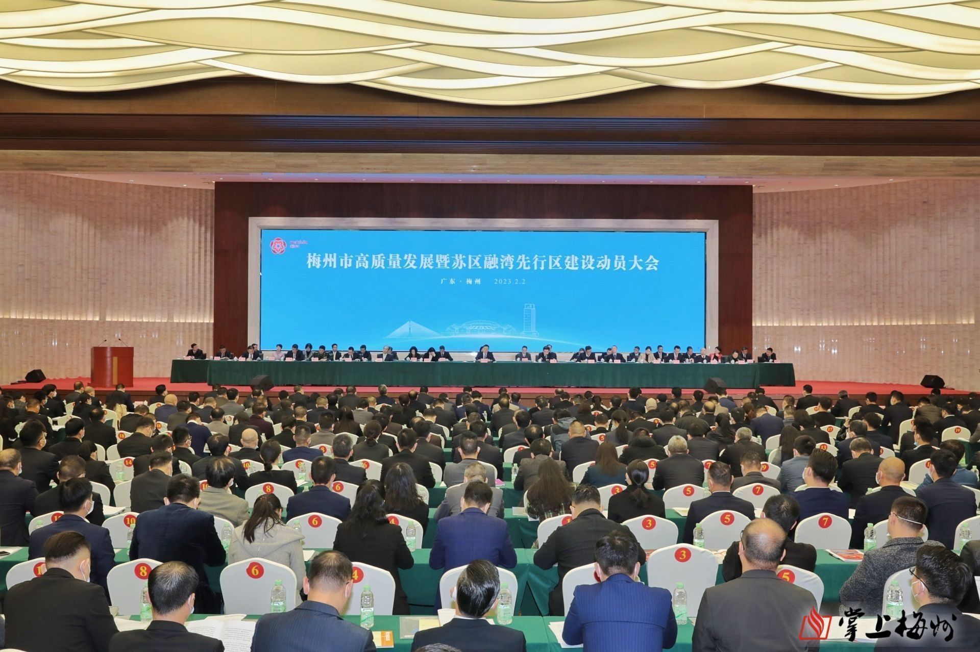 2023年2月2日,全市高质量发展暨苏区融湾先行区建设动员大会在世界客商中心举行。会议贯彻落实全省高质量发展大会精神,动员全市上下立即进入状态、迅速行动起来,全力建设苏区融湾先行区,全身心投入到梅州高质量发展的生动实践。