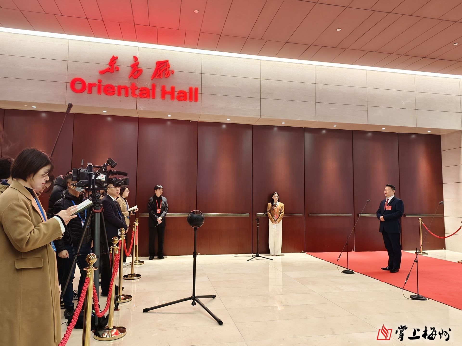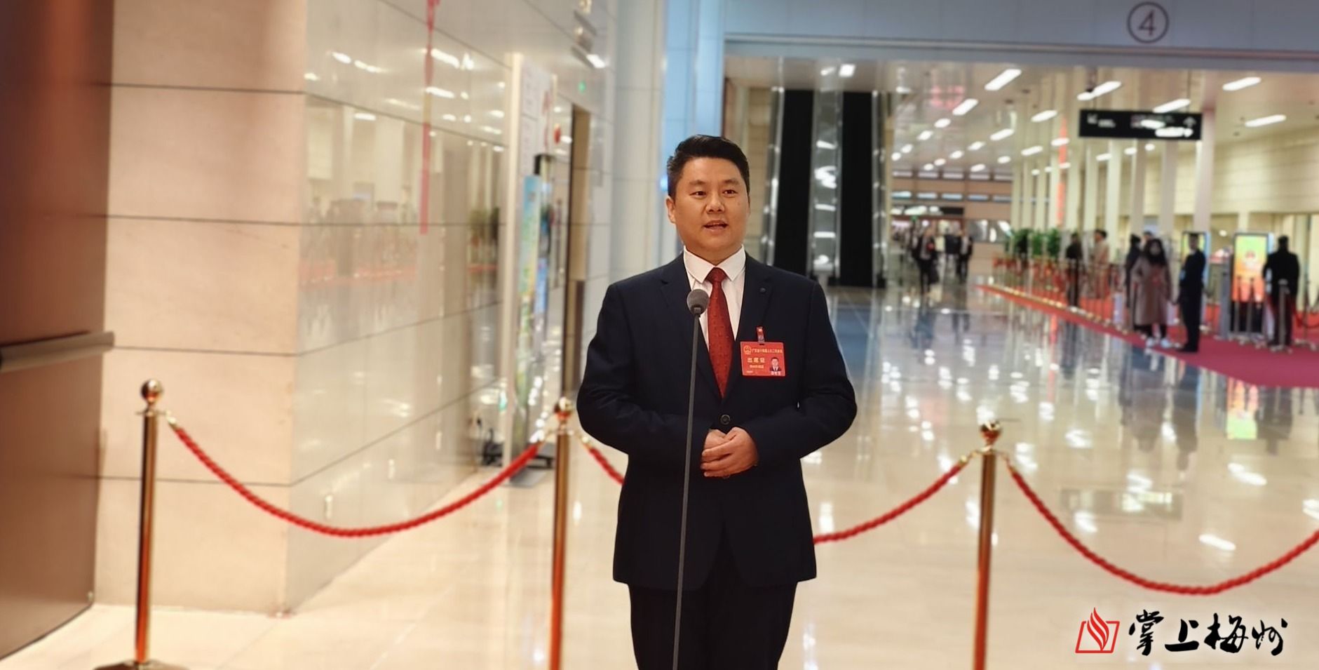 掌上梅州讯 通民意,道自信。1月24日上午,广东省十四届人大二次会议第二场“代表通道”开启。省人大代表、广东汉剧传承研究院展演部副主任潘智勇作为踏上“代表通道”的梅州代表,与其他5名人大代表一起接受媒体集中采访。