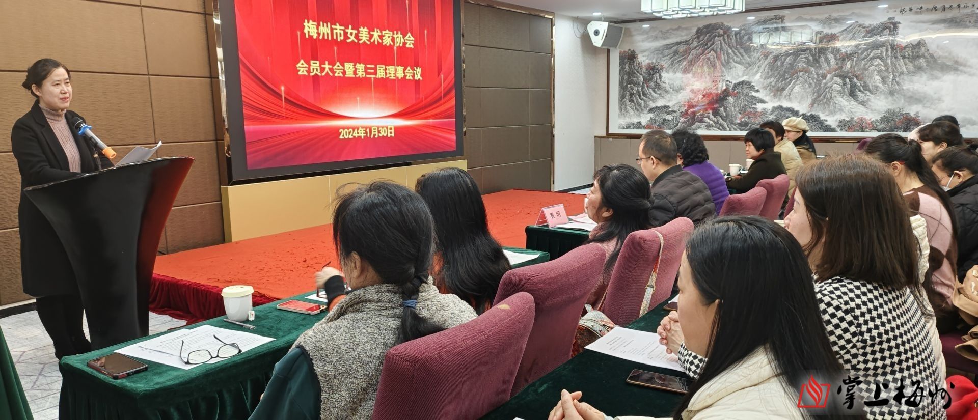 掌上梅州讯 1月30日,市女美术家协会会员代表大会顺利召开,会议采取线上、线下相结合的方式举办。梅州市人大常委会办公室原主任何利荣,市妇联办公室主任黄明,市女美术家协会第二届领导班子、理事会成员、会员代表等90多人参加会议。