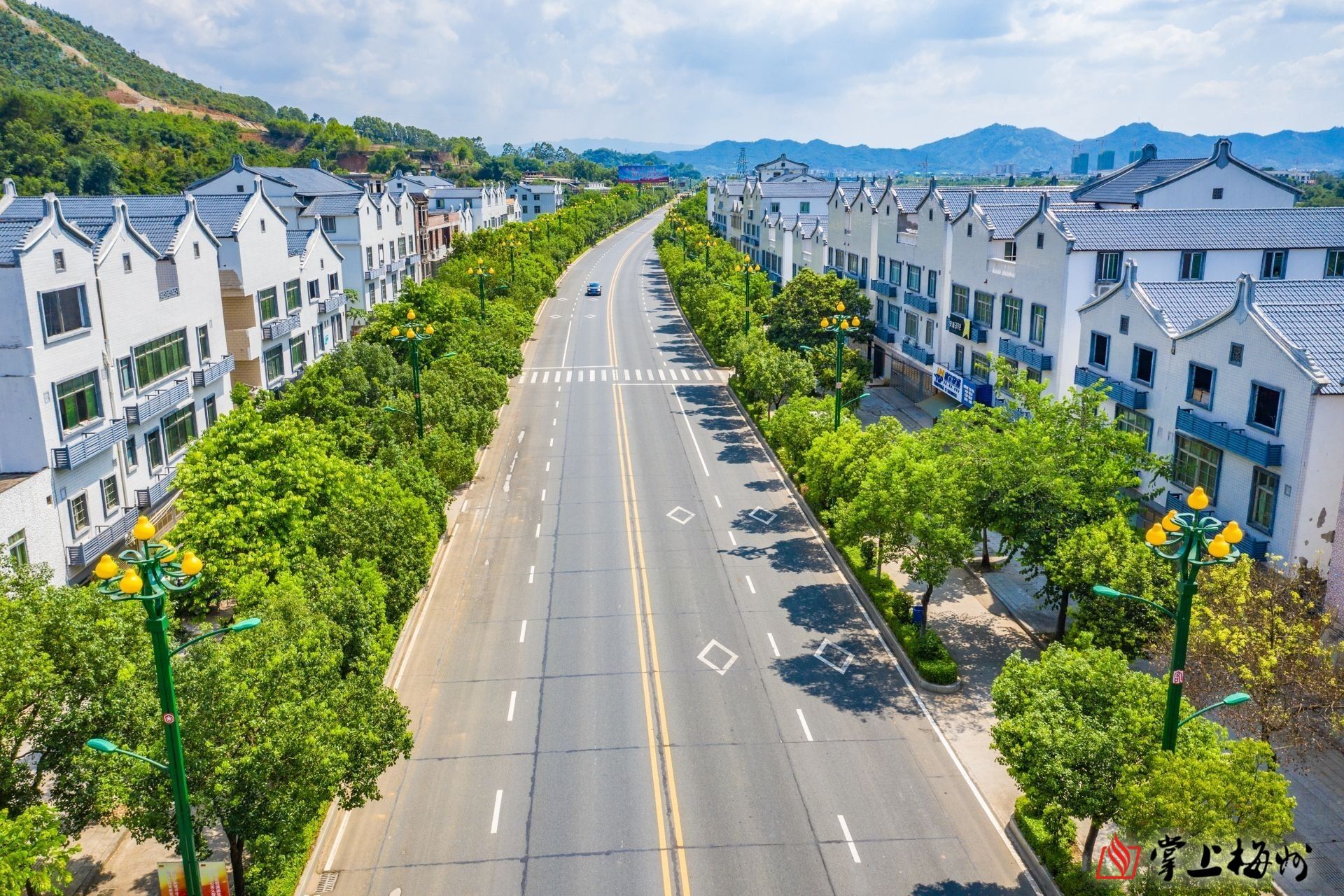 雁洋镇S223国道边,白墙黛瓦美丽圩镇一景。