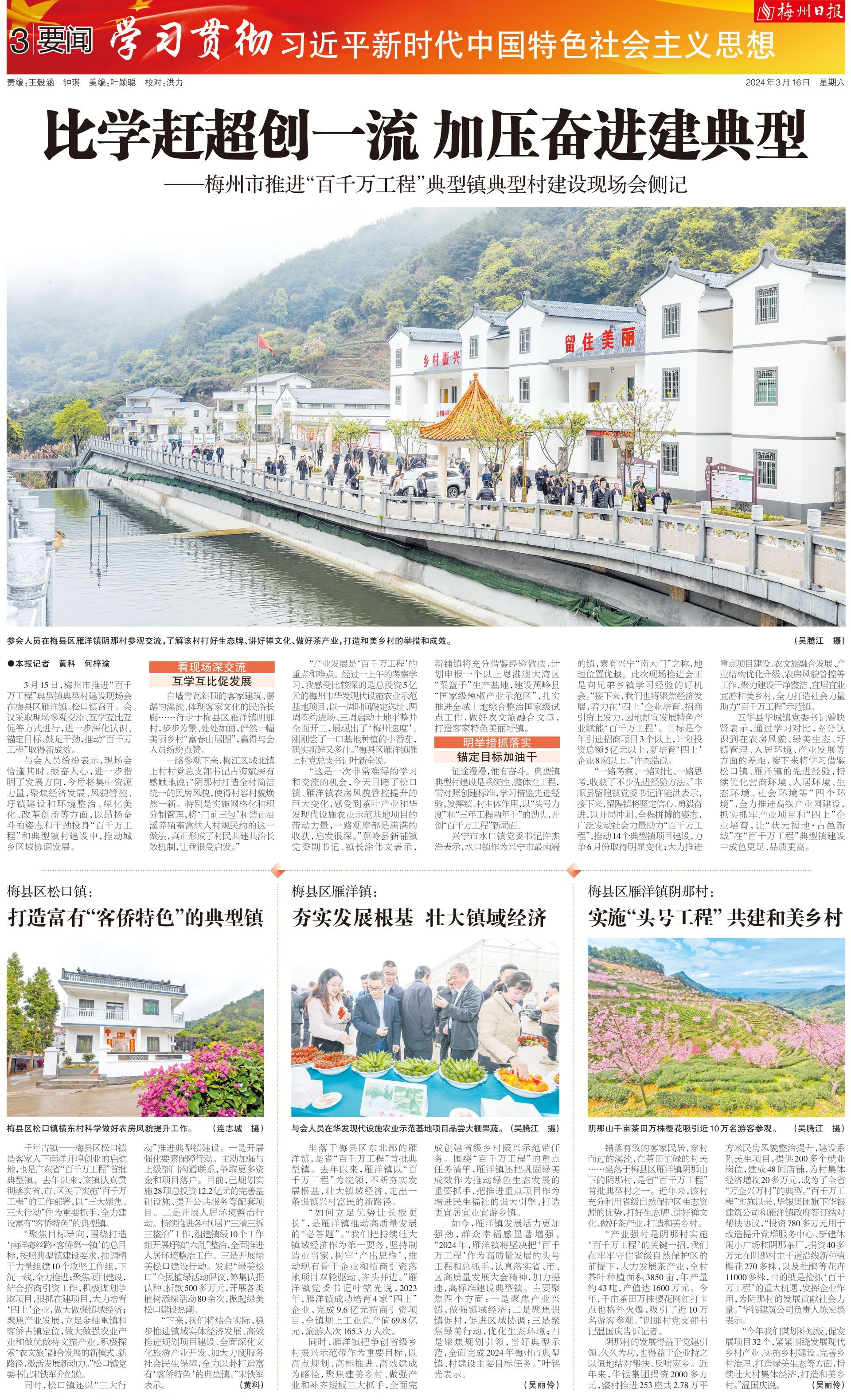 3月15日,梅州市推进“百千万工程”典型镇典型村建设现场会在梅县区雁洋镇、松口镇召开。会议采取现场参观交流、互学互比互促等方式进行,进一步深化认识、锚定目标、鼓足干劲,推动“百千万工程”取得新成效。