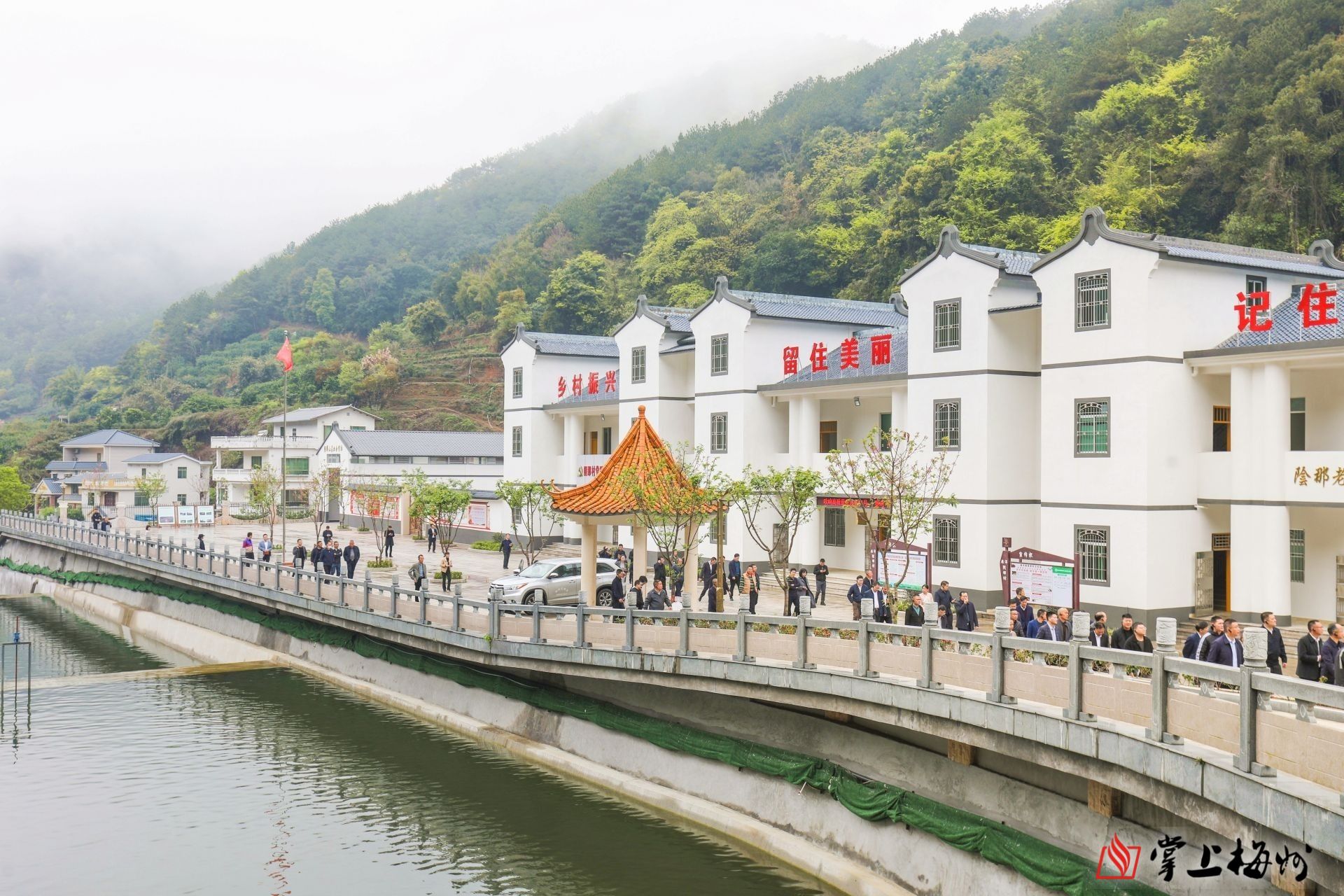 白墙青瓦斜顶的客家建筑、潺潺的溪流、体现客家文化的民俗长廊……行走于梅县区雁洋镇阴那村,步步为景、处处如画,俨然一幅美丽乡村“富春山居图”,赢得与会人员纷纷点赞。