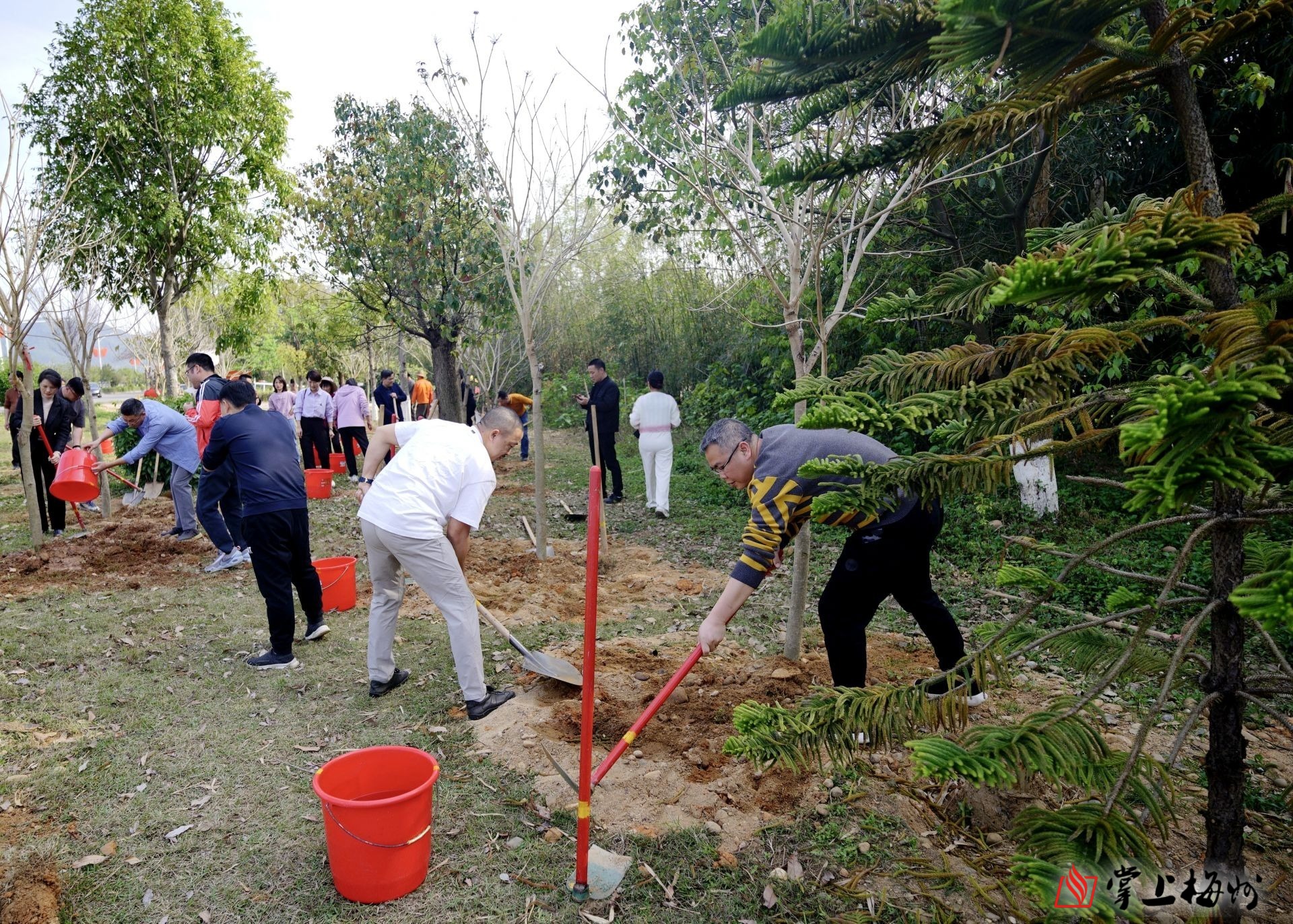 活动当天阳光明媚,春风和煦。在植树现场,大家分工合作,扶树正苗、挥锹铲土、培土围堰、提水浇灌……经过大家的齐心协力,一棵棵生机勃勃、新芽吐绿的小树苗稳稳地扎根在土壤中,为三月的寿乡蕉岭增添了一抹新绿。大家纷纷表示,此次植树活动不仅亲身体验了植树的乐趣,更让他们深刻认识到了植树造林的不易与重要性。