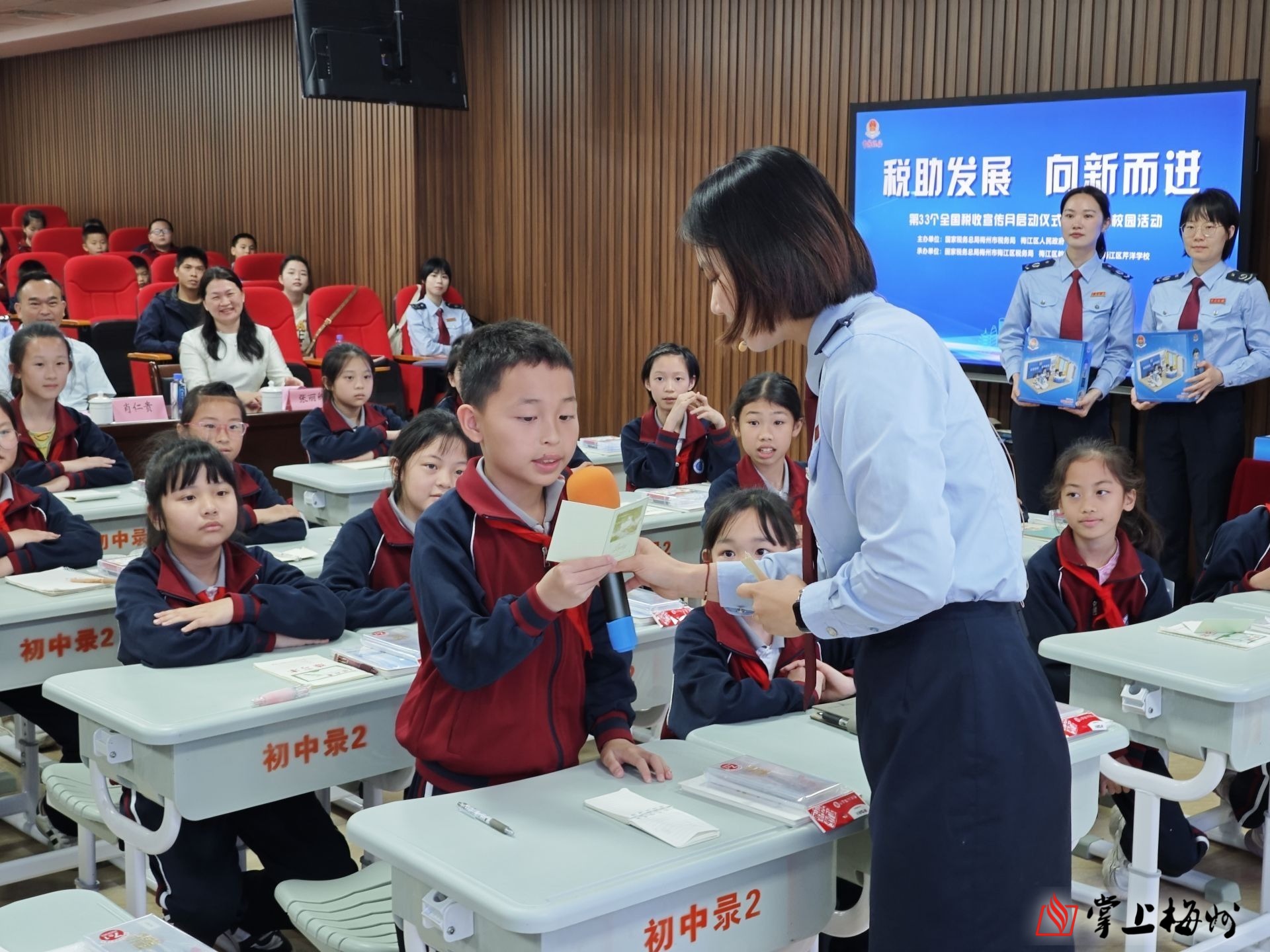 掌上梅州讯 4月1日上午,以“税助发展 向新而进”为主题的第33个全国税收宣传月启动仪式暨税法进校园活动在梅江区芹洋学校举行,梅州市税务局联合梅江区政府、区教育局、区税务局以税收宣传月为契机,开展“税法润童心 诚信伴成长”青少年税收普法活动,积极普及税法知识,引导公众特别是青少年进一步增强依法诚信纳税意识,提升税法遵从度。