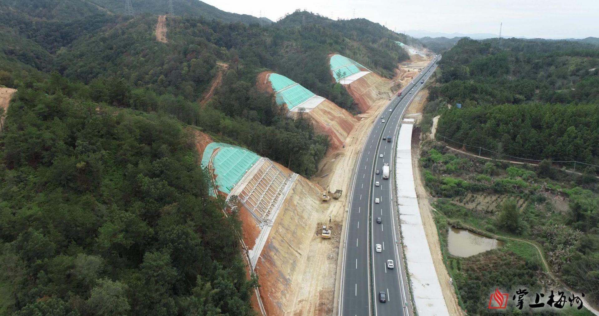 汕梅高速改扩建项目沿着山谷走廊带修建,桥梁和隧道占比高,沿线高边坡共93处,地形地貌复杂,绿色公路建设难度大。